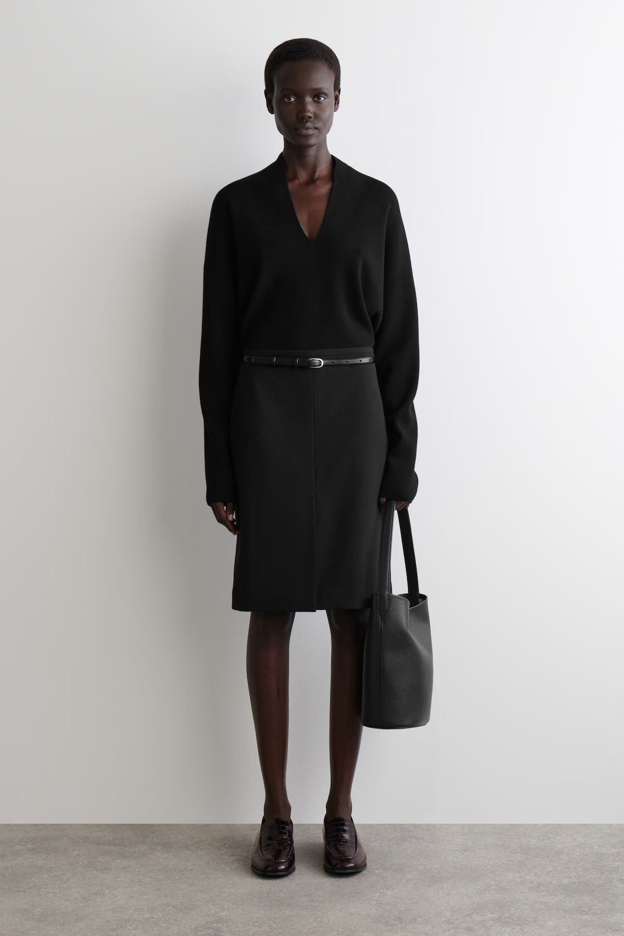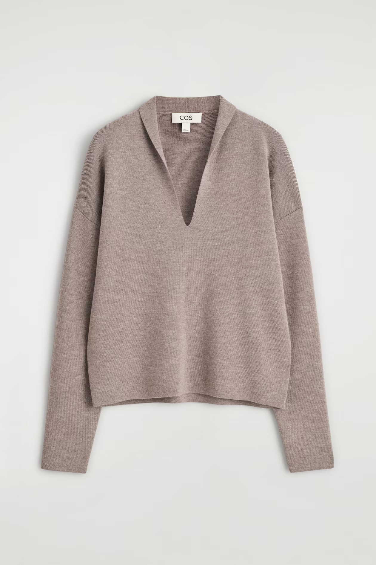 Introducing the Capsule Wardrobe: a seasonal evolution of timeless COS icons. Simple pieces like this sweater bring a fresh charm to your transitional wardrobe. Crafted from exceptionally soft merino wool in beige, it features a sculptural V-neck that folds over slightly at the neck. Regular fit. This item contains Responsible Wool Standard TE-00047206 (RWS) wool fibers from mills certified to animal welfare and agricultural standards. Outer: 100% Merino wool. Details excepted/Machine wash. Back length in size S = 59 cm/Model wears size S