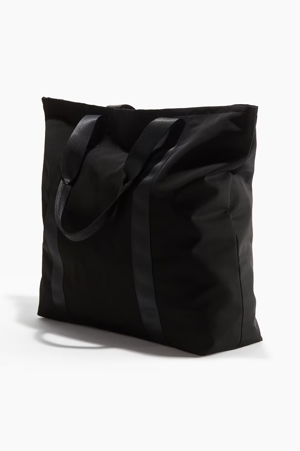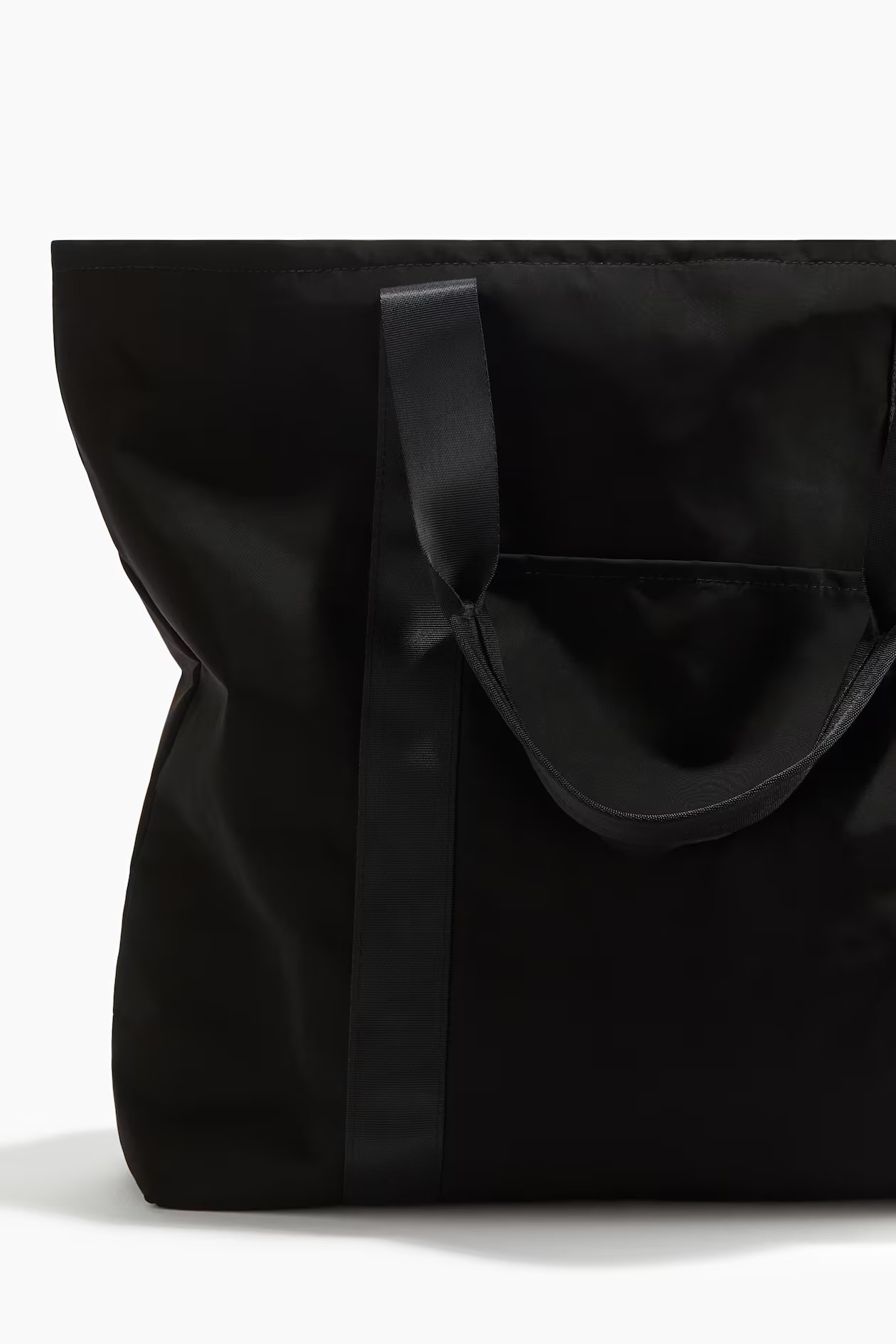 Spacious sports bag in water-repellent functional fabric with two handles, a zip at the top and zipped outer and inner compartments. Lined. Depth 13 cm. Height 41.5 cm. Width at the bottom 43 cm. Capacity 24 litres.