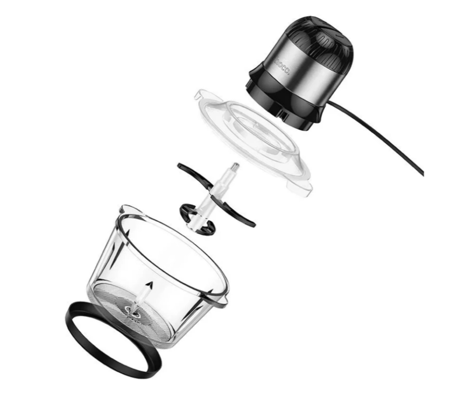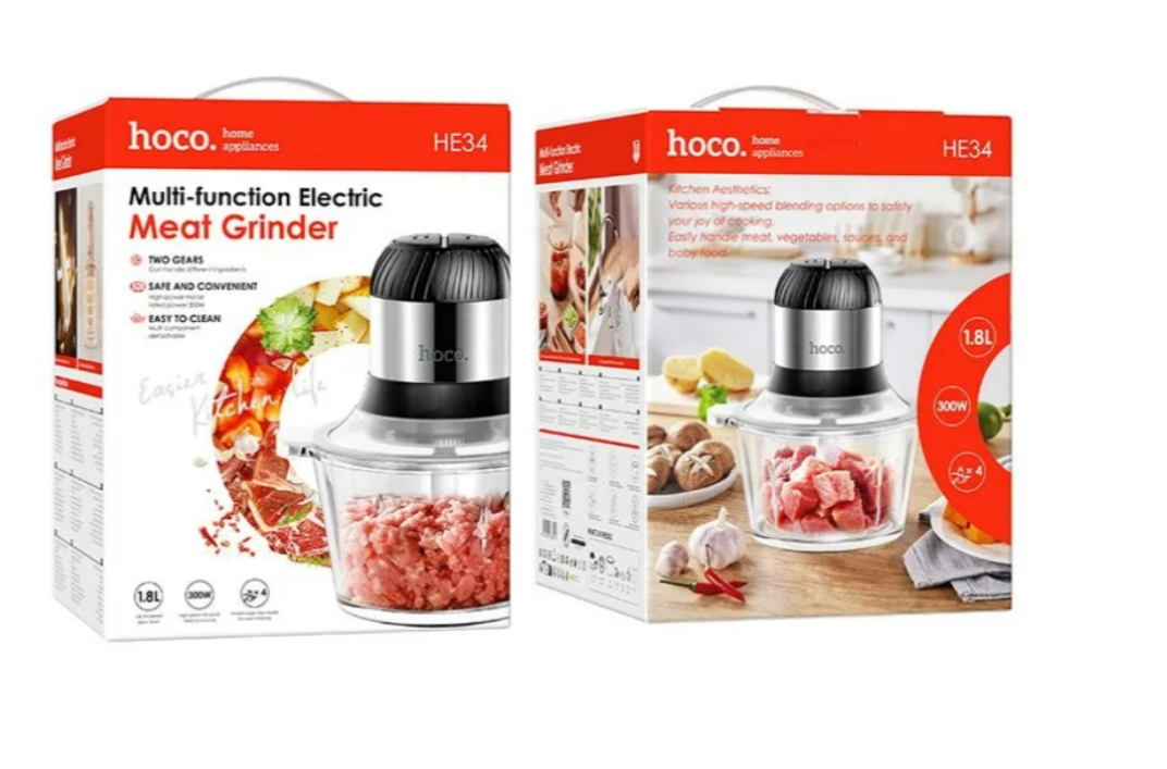 The HOCO he34 electric kitchen grinder is a convenient and functional device for your kitchen. A glass container with a volume of 1.8 liters contains enough ingredients for various culinary experiments. The intelligent two-speed design allows easy adjustment for processing various foods. To cut fresh product, meat or grass more accurately, you can choose the desired speed 3D four-blade spiral knife in a few seconds to ensure high quality, even grinding. The special configuration improves circulation inside the container, which makes it possible to process food efficiently and quickly. The ease of operation of this device makes it an excellent assistant for home cooks and culinary enthusiasts - it is easy to clean and disassemble the blender.
