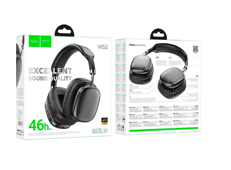 The HOCO W52 is a versatile wireless headphone that combines style, sound quality, and versatility. They work for up to 46 hours, support playback via Bluetooth, AUX cable and TF cards, and are equipped with convenient voice prompts.