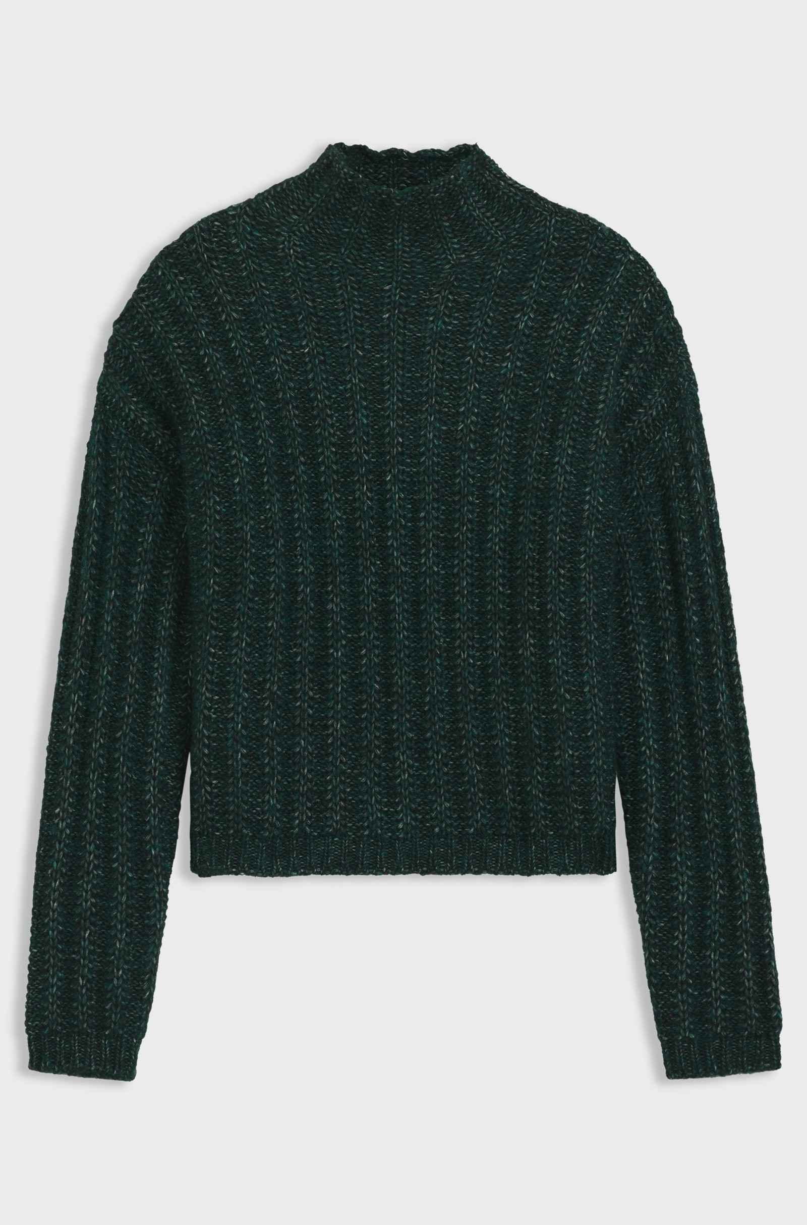 Knitted with an exaggerated rib, this boxy HUGO Womenswear sweater is great for modern layering. Blended with cotton, wool and alpaca. Embroidered logo. Mock neck.