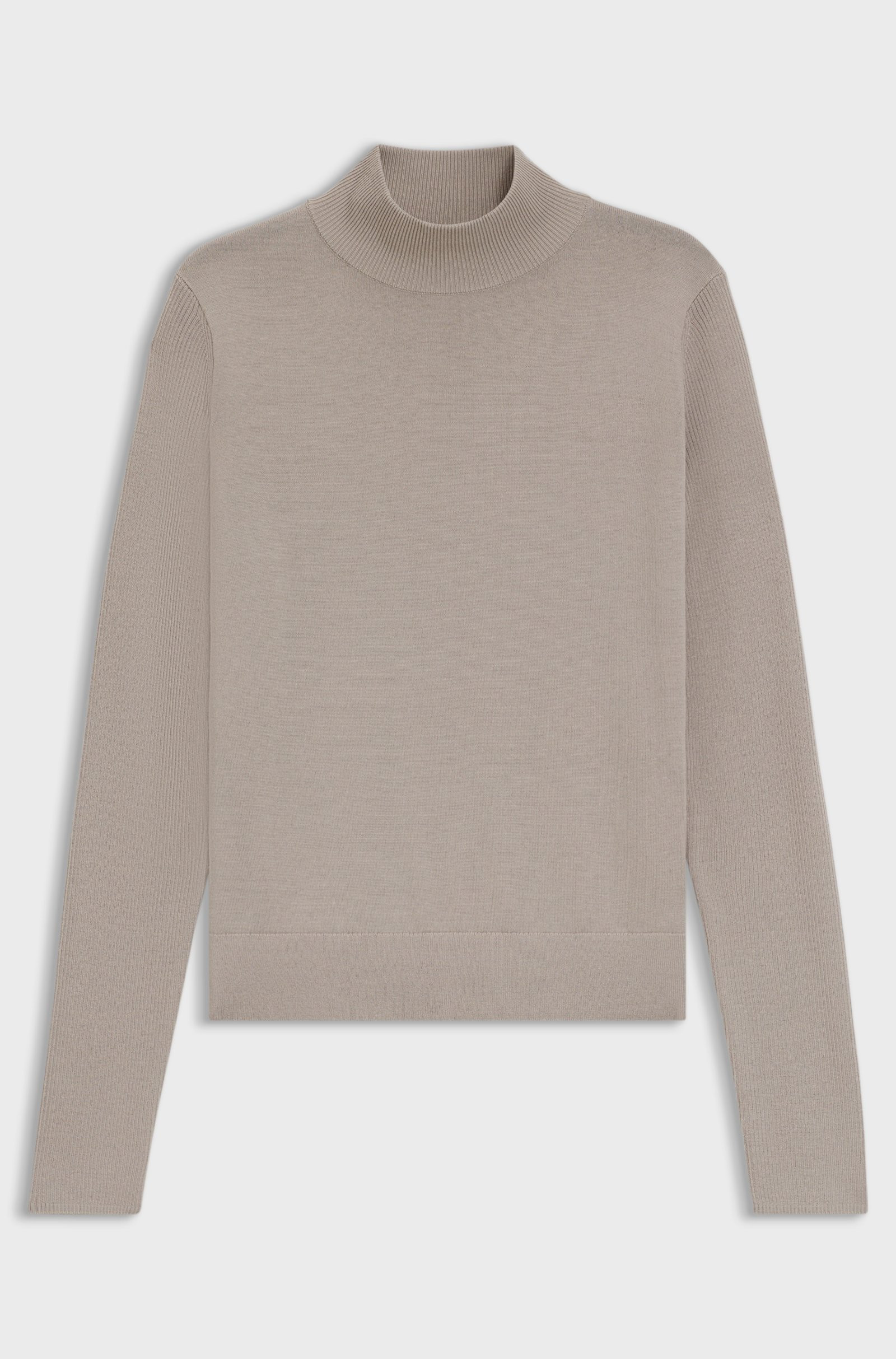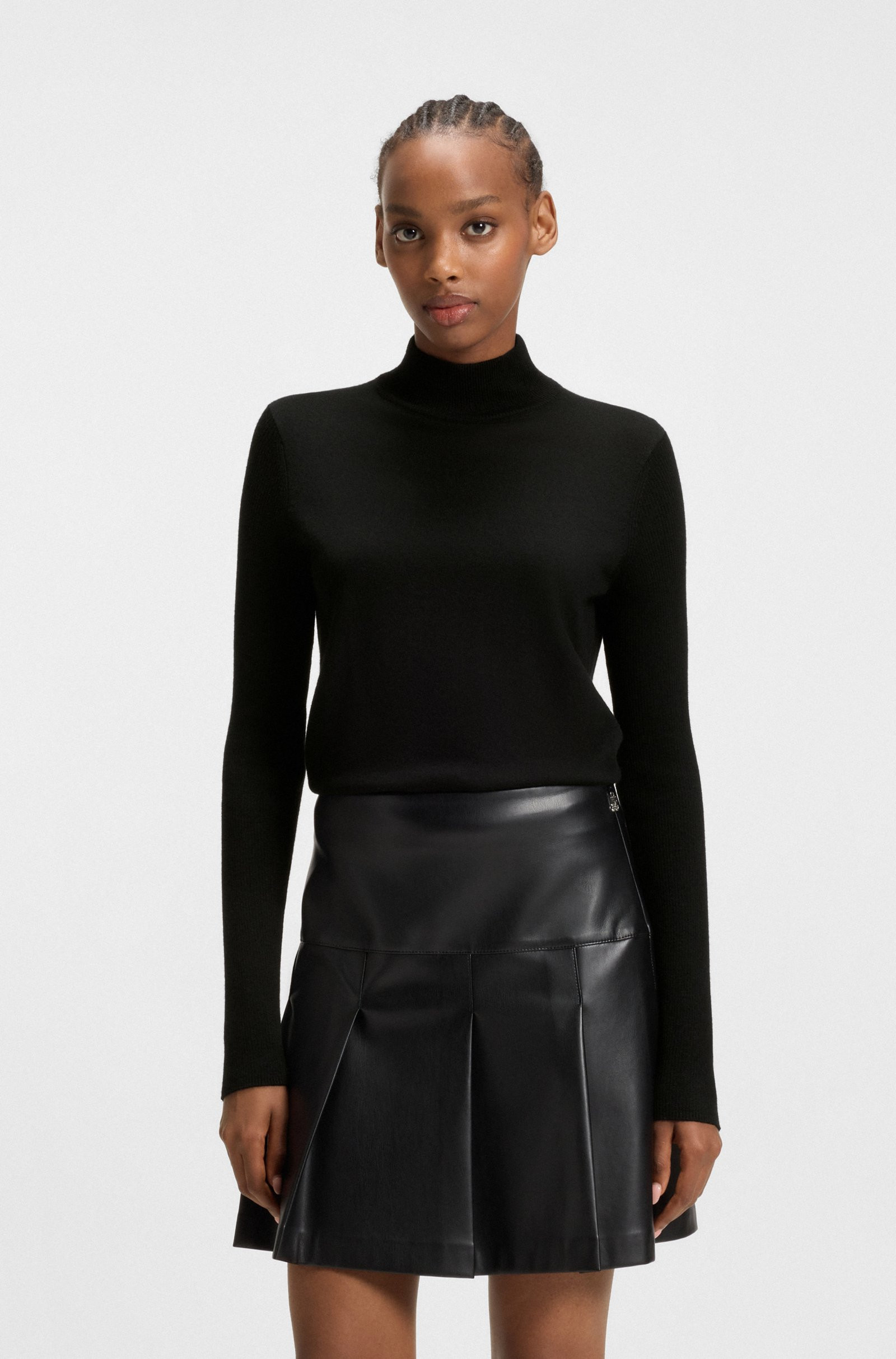 With a straight fit in extra-fine merino wool, this mock-neck HUGO Womenswear sweater is ideal for winter layering. Embroidered stacked logo. Mixed structures. This product contains at least 60% better raw materials. This product is made with responsibly sourced wool. For us, responsibly sourced means mulesing free, and meeting the standards of the Five Freedoms of animal welfare.