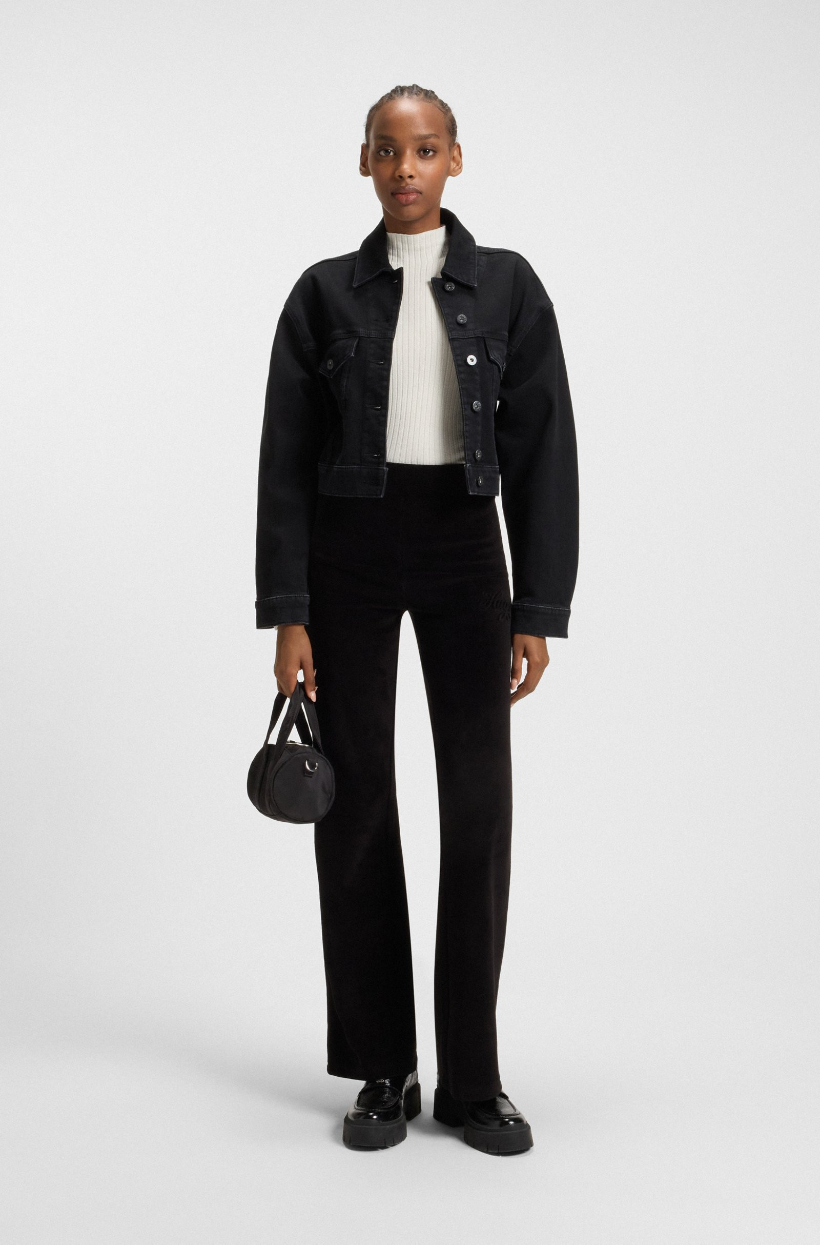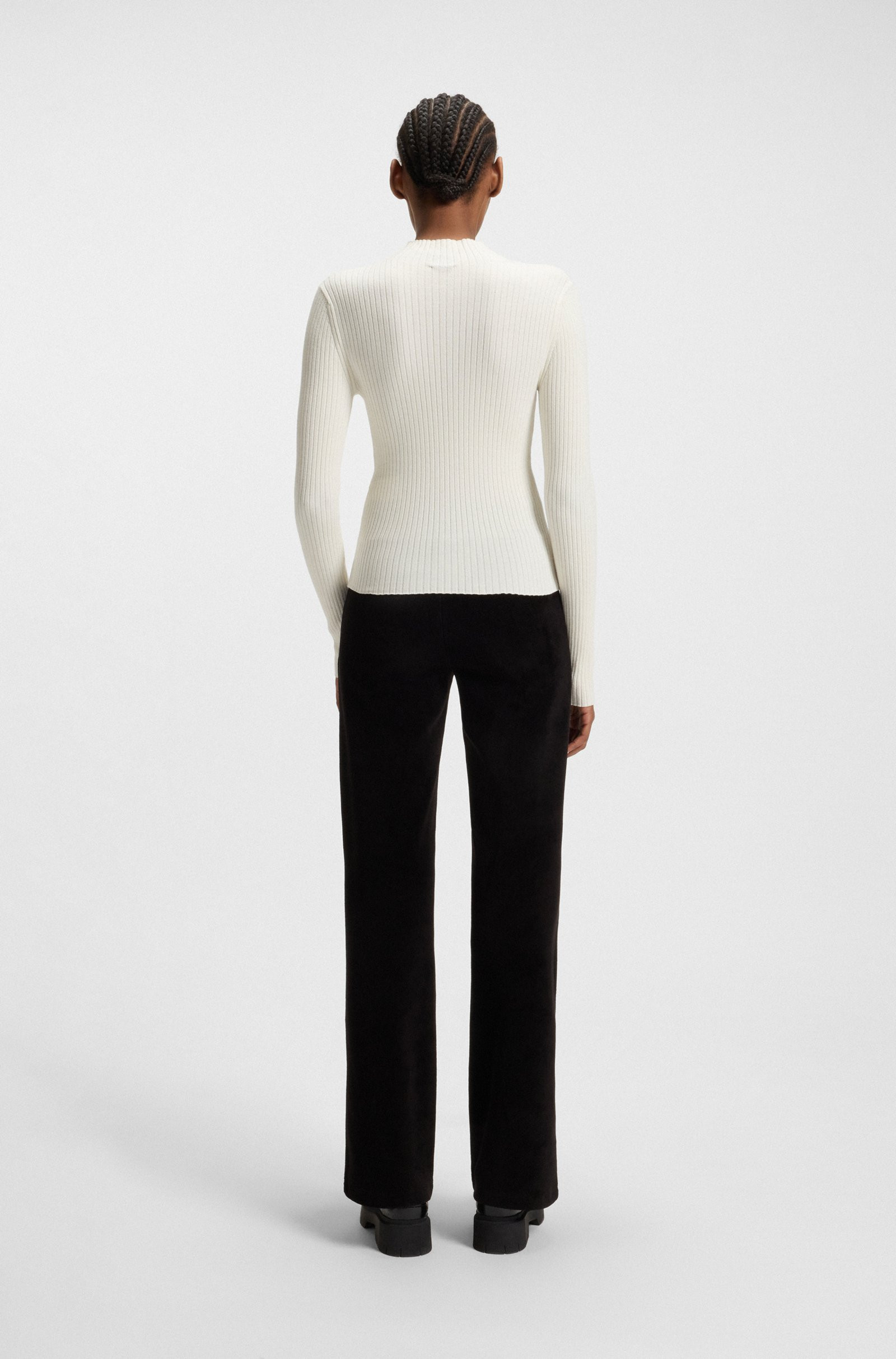An essential with a twist, this ribbed-knit HUGO Womenswear sweater is embroidered with a Happy HUGO logo. Flattering slim fit. Mock neckline. This product is made with cellulose fibres, derived from natural raw wood material and sourced from responsibly managed forests. We cooperate with external organisations to ensure respectful treatment of virgin and endangered forests.