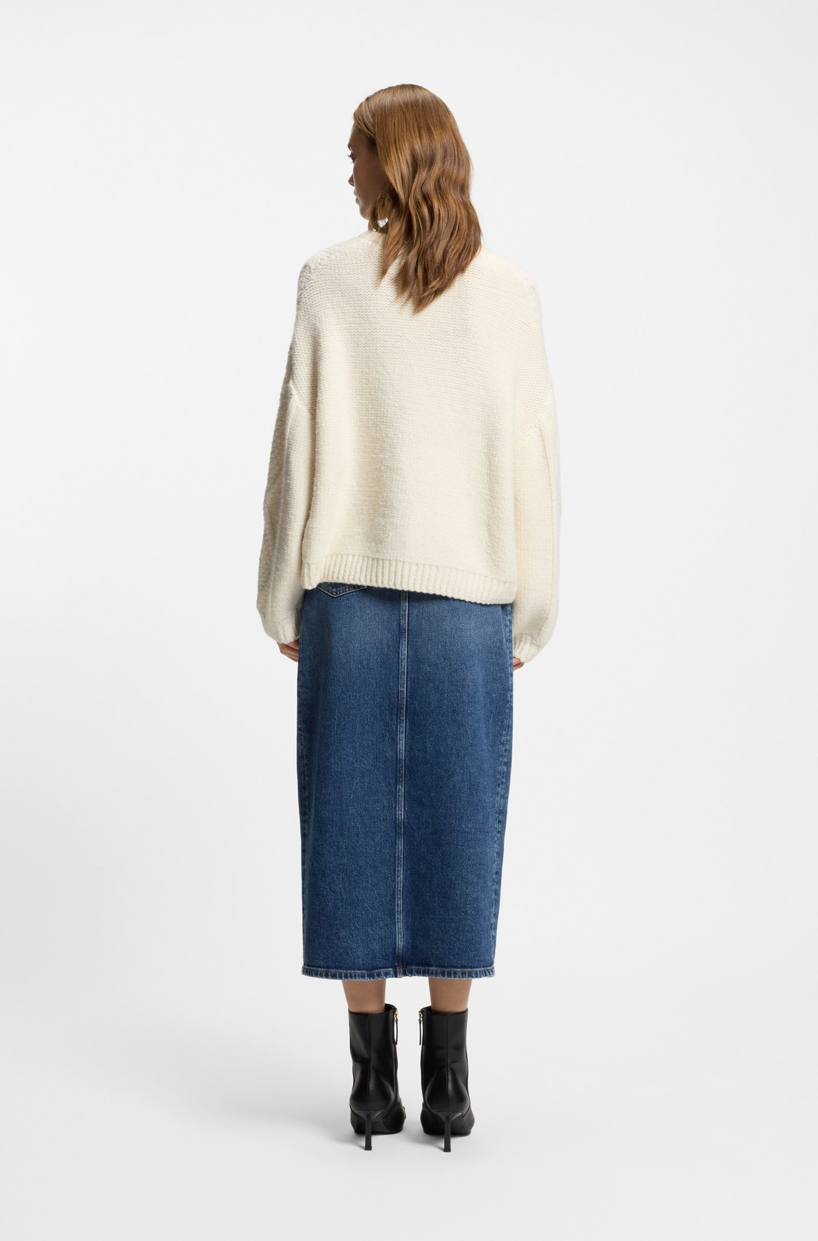 The model wears a size S and is 178 cm tall with a, 77 cm chest, 59 cm waist and 86 cm hips.