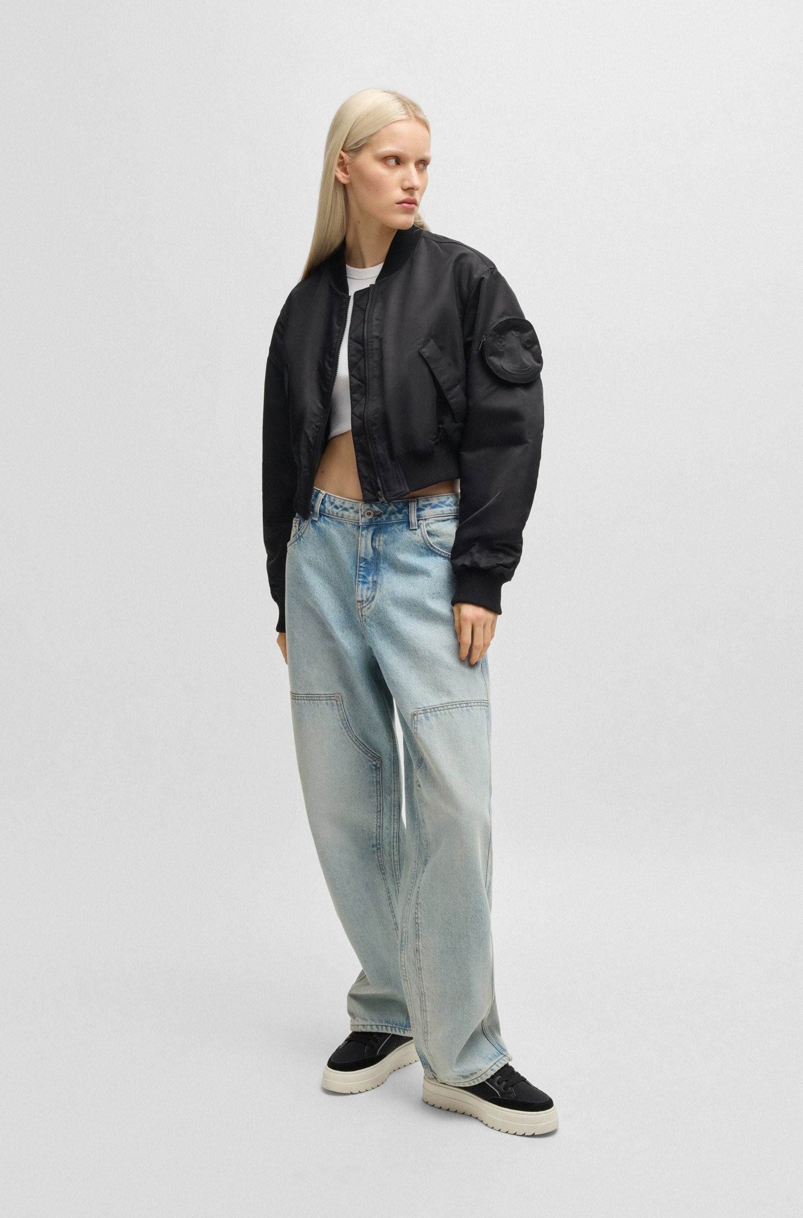 The model wears a size S and is 180 cm tall with a, 83 cm chest, 61 cm waist and 89 cm hips.