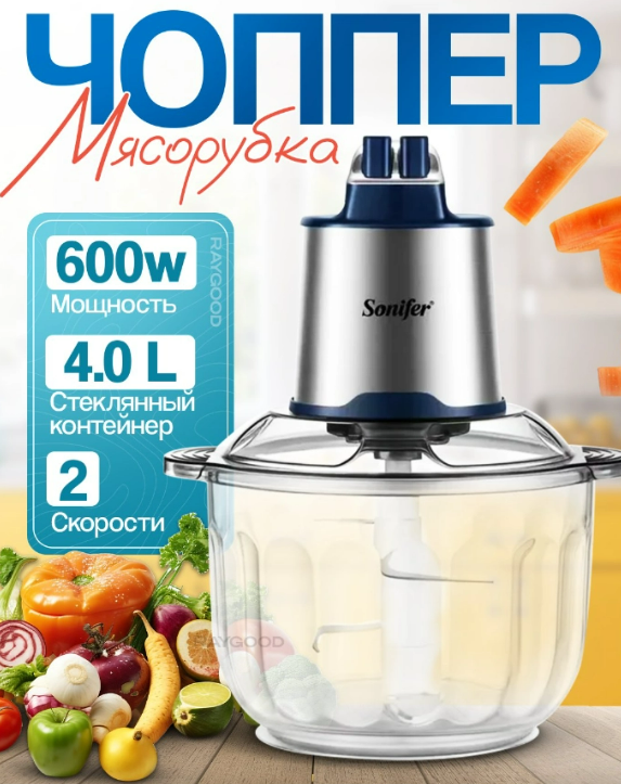 The 4L Sonifer SF-8123 electric chopper is a multifunctional kitchen helper that will become an indispensable attribute in your kitchen.