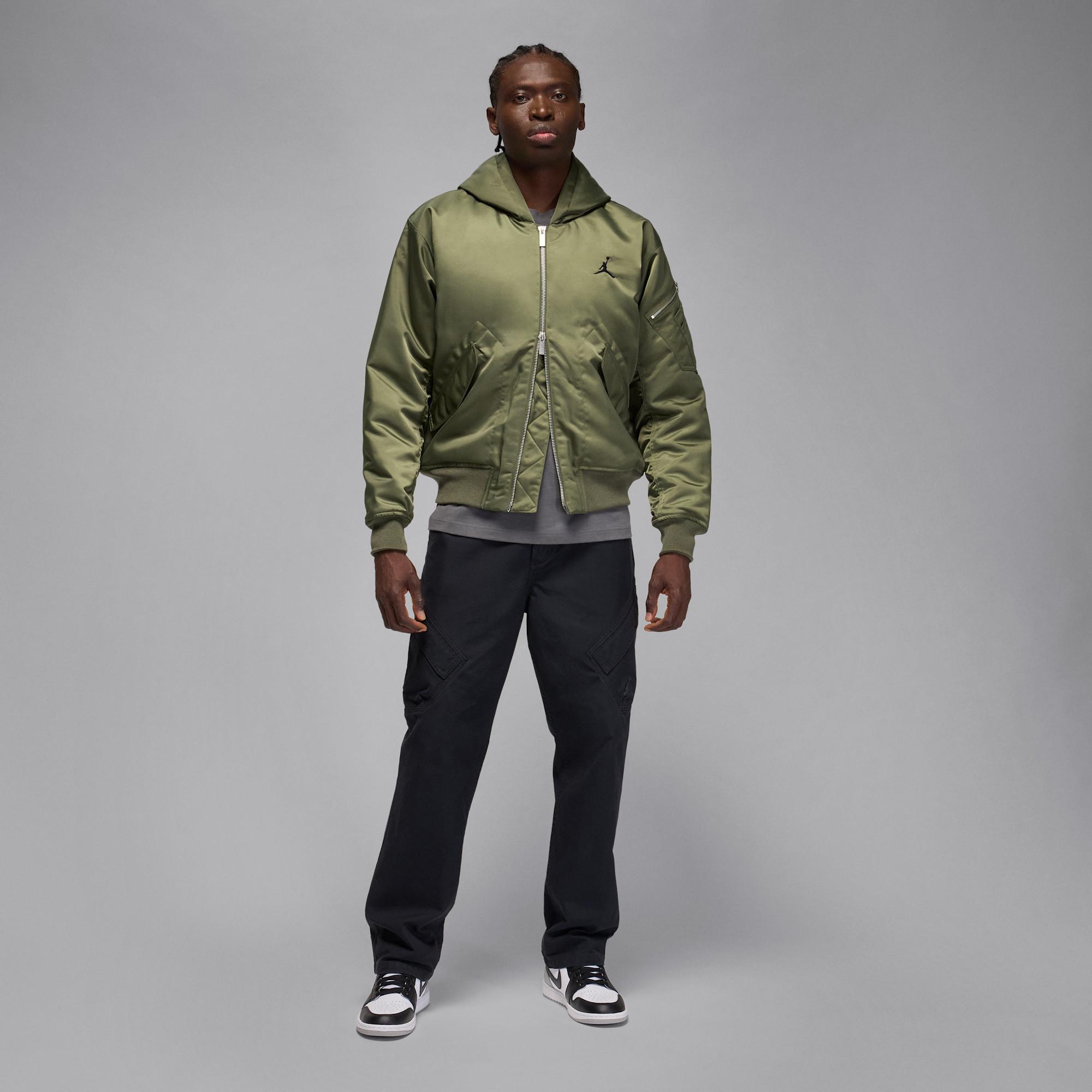 This classic Jordan-style bomber jacket receives a versatile update with a three-piece hood, blending iconic design with modern functionality. Crafted with a water-repellent twill outer layer, it offers exceptional durability, making it suitable for various conditions. The smooth, woven lining ensures comfort, while its relaxed fit is designed for easy layering over other garments. Signature details, such as a convenient zippered pocket on the sleeve and ribbed material at the cuffs and hem, provide that authentic, traditional Jordan aesthetic. This jacket is a perfect fusion of heritage style and practical features, ideal for everyday wear.