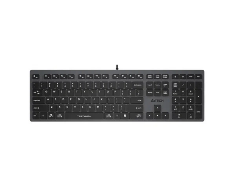 Common featuresThe cable is 1.5 mm long and the functional A4Tech fstyler FX50 keyboard connects to the computer via a USB port. The length of the cable is 1.5 m. the keys have a square shape, the markings of the English, Russian and Kazakh letters are white and protected from wear. There are additional multimedia buttons. The advantage of the model is that the manufacturer has equipped it with reliable moisture protection.