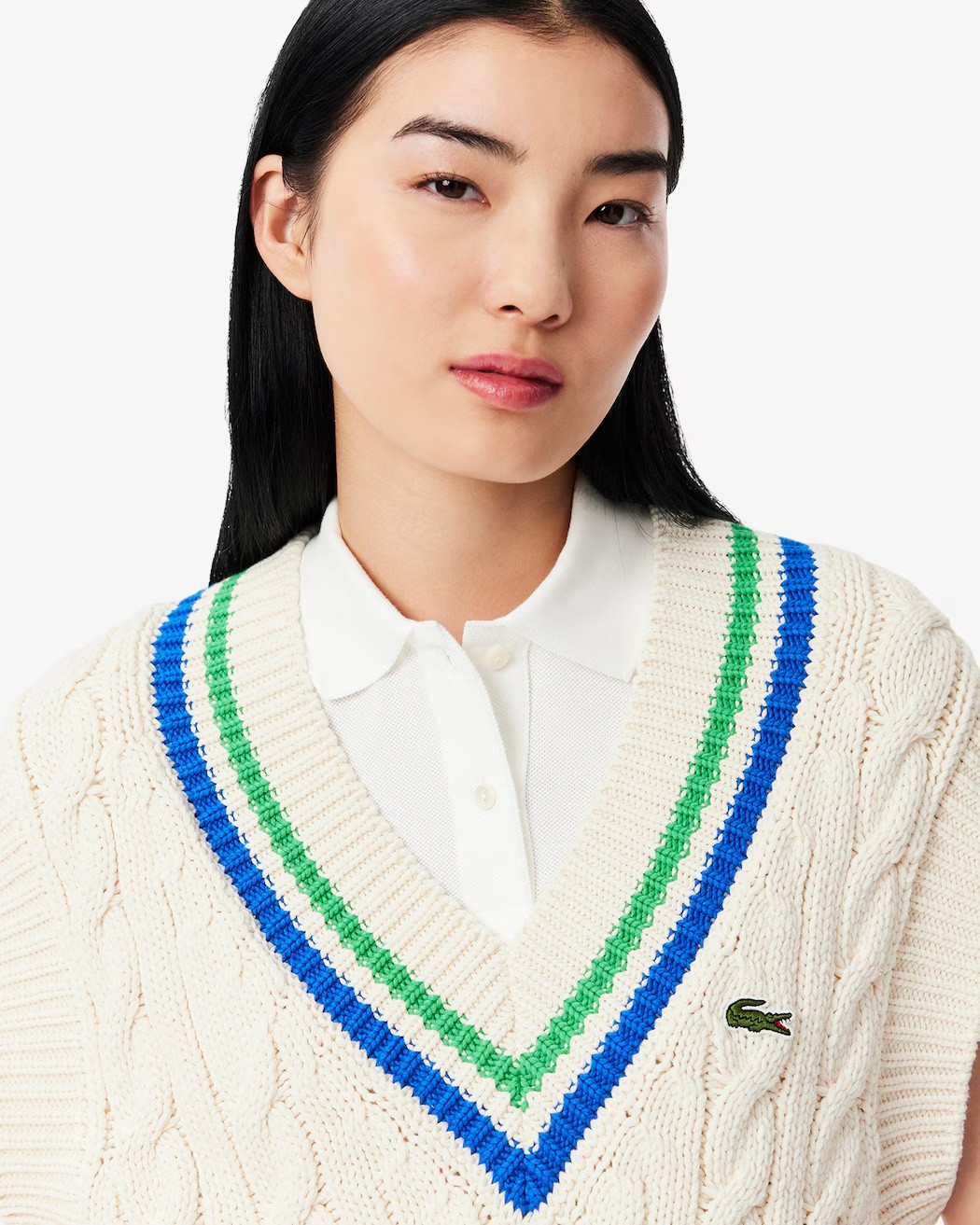LACOSTE Sleeveless pullover with V-neck and cable knit pattern