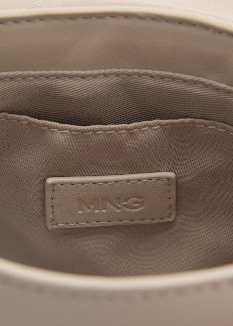 Pochette style. Leather effect. Shoulder strap. Flap closure with magnetic button.