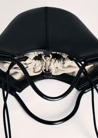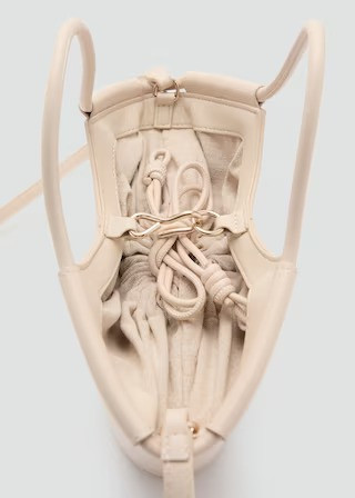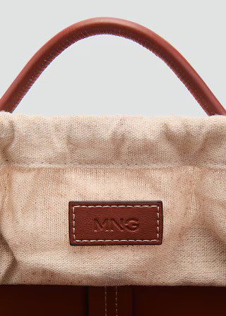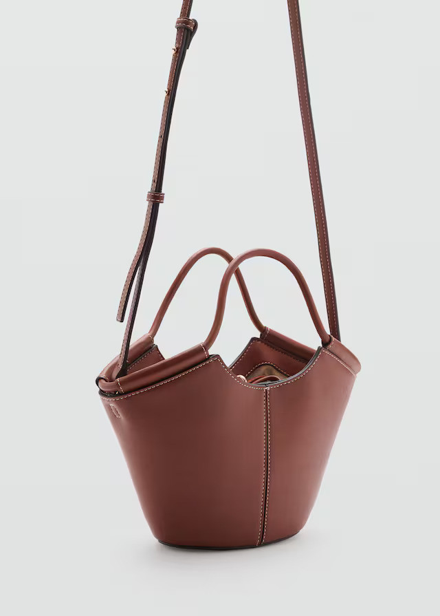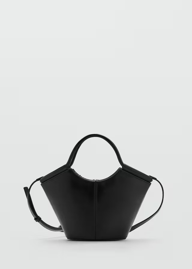 Small size. Shopper style. Decorative stitching. Shoulder strap. Two short handles. Hook closure. Adjustable closure.