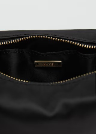 Medium size. Satin fabric. Handle. Decorative knot. Detachable chain strap. Inside pocket. Zipper closure. Lining.