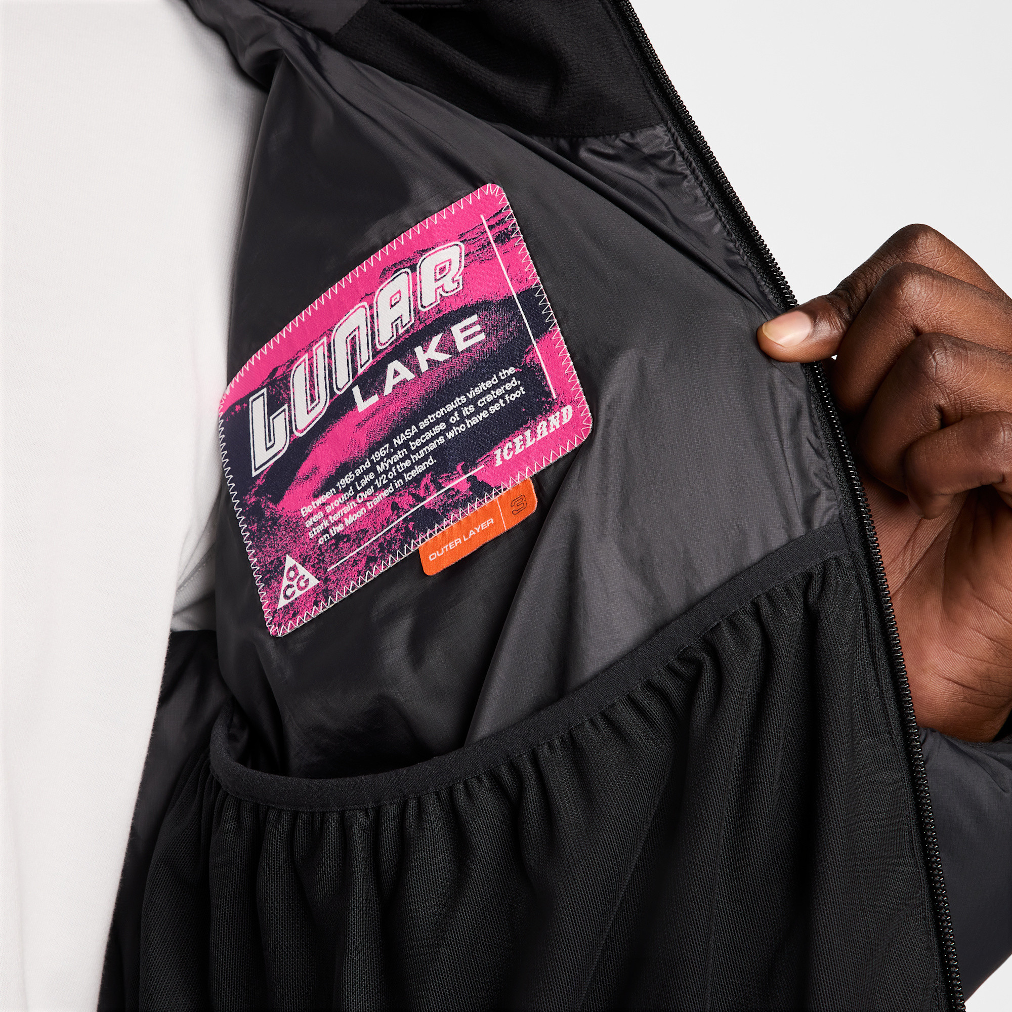 Designed for cold-weather adventures, this fully equipped Nike ACG "Lunar Lake" puffer jacket ensures exceptional warmth even in low temperatures, thanks to its advanced PrimaLoft® insulation. The innovative Therma-FIT ADV technology further enhances thermal regulation, keeping you comfortable during your outdoor pursuits.