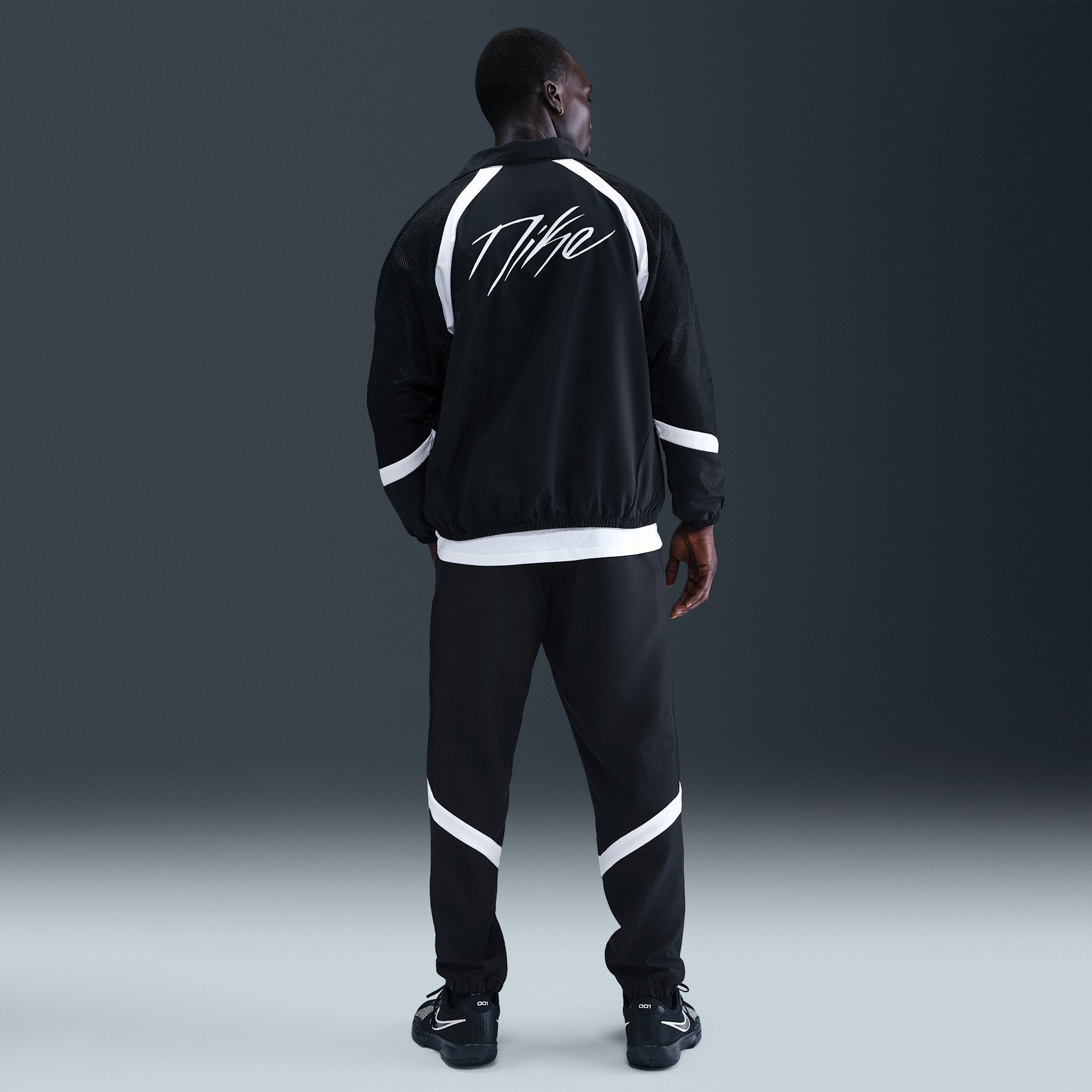 Show your unwavering dedication to the court with the Nike Icon Woven Men's Basketball Jacket. This retro-inspired warm-up jacket is designed for athletes who live and breathe the game. Its generous, comfortable fit allows for unrestricted movement, making it perfect for pre-game routines or casual wear.