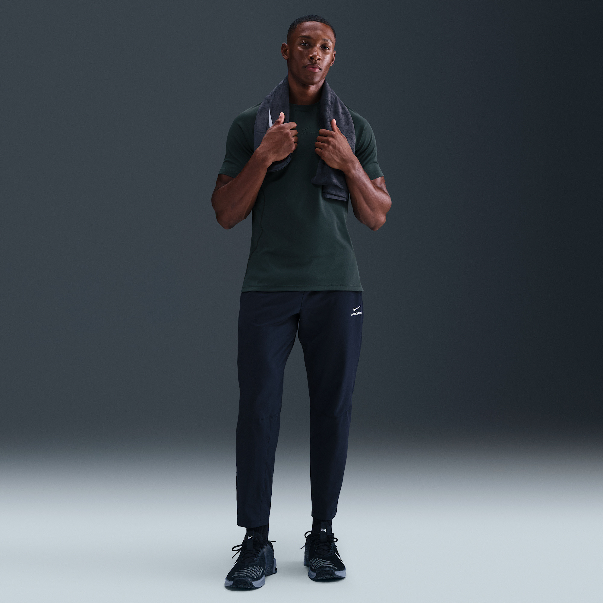 Engineered for peak performance, this Nike Pro top features advanced sweat-wicking Dri-FIT technology, keeping you dry and comfortable through your most intense training sessions. Crafted from a smooth, breathable fabric, it ensures optimal airflow and a soft feel against your skin. The design incorporates a rounded hem, providing extended coverage and protection, allowing you to move with confidence during dynamic workouts. This versatile short-sleeve shirt is an essential addition to any athlete's gear, offering both functionality and a professional aesthetic.