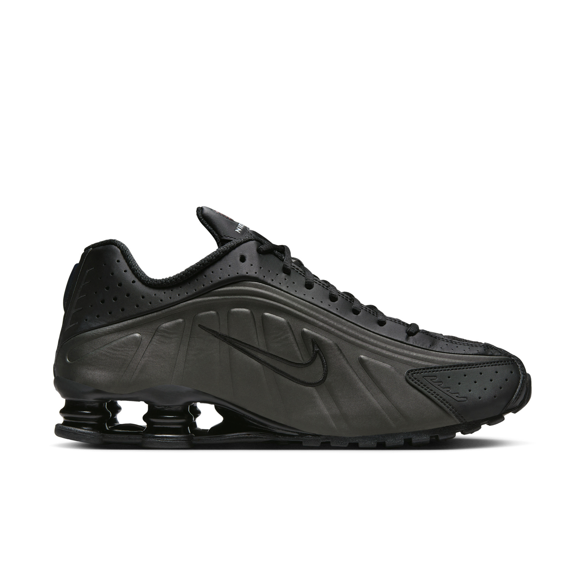 The Nike Shox R4 is a revamped version of the early 2000s classic, replicating the original with futuristic design lines and high-performance cushioning. Nike Shox columns in the heel distribute weight to maximize comfort and provide a striking look on the street.