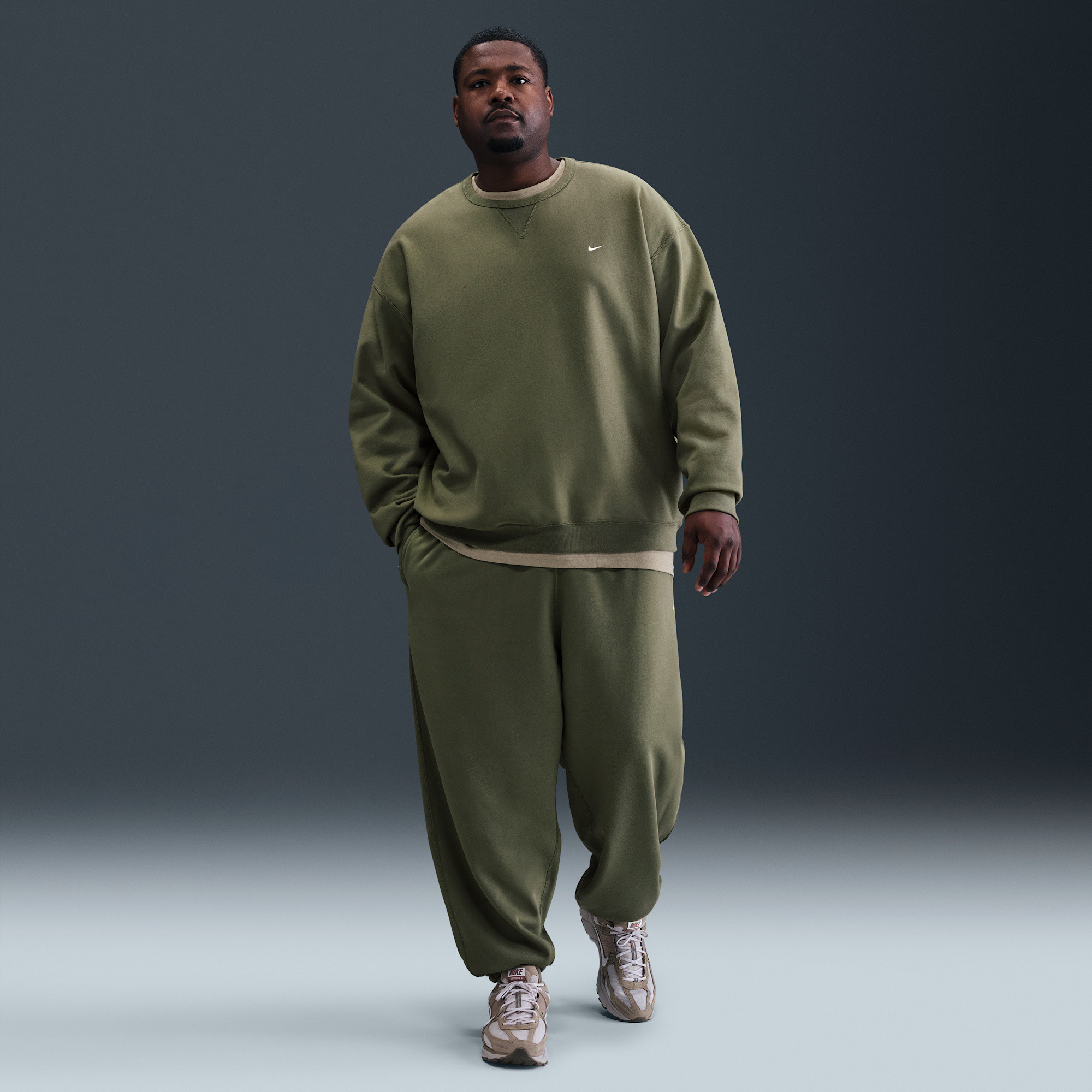 Elevate your cool-weather wardrobe with the Nike Solo Swoosh Men's Fleece Crewneck Sweatshirt. This warm and structured piece is meticulously crafted from heavy, brushed fleece, offering a luxurious feel that's perfect for casual wear. The fabric boasts an exceptionally soft interior, providing supreme comfort against the skin, while its smooth exterior ensures a refined look. Designed with a relaxed fit, it offers generous room for movement, making it an ideal choice for layering or simply enjoying unrestricted comfort throughout your day. Experience the perfect blend of warmth, style, and freedom with this essential Nike staple.