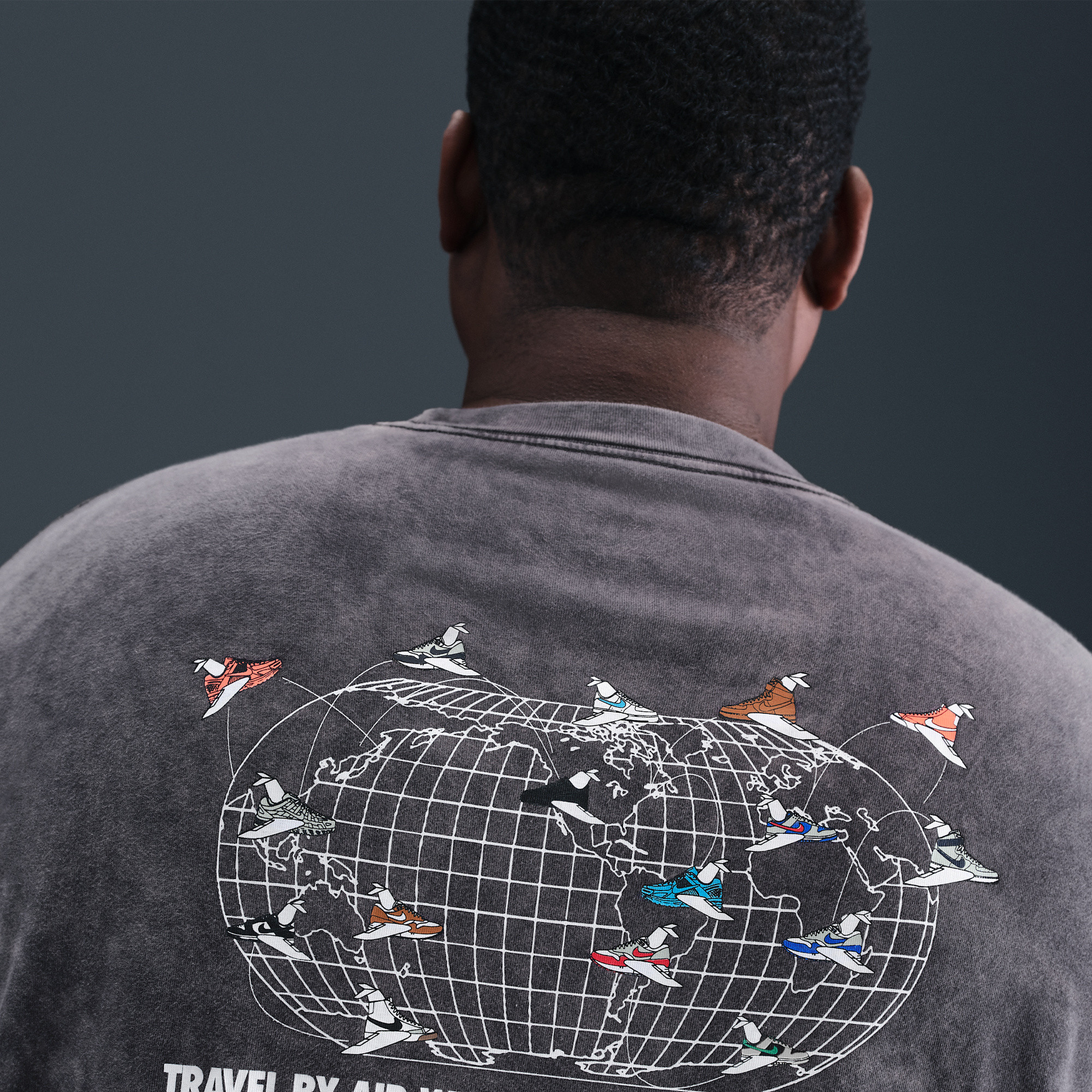 Embrace a blend of heritage and comfort with the Nike Sportswear T-Shirt. This tee features a reimagined Air Max graphic, drawn directly from Nike's design archives, and is finished with a stylish vintage wash. Designed for a relaxed fit, it offers a loose feel on the body, ensuring a casual and effortless look for everyday wear. Crafted from mid-weight cotton, it provides a soft, slightly structured feel, guaranteeing durable comfort throughout the day.