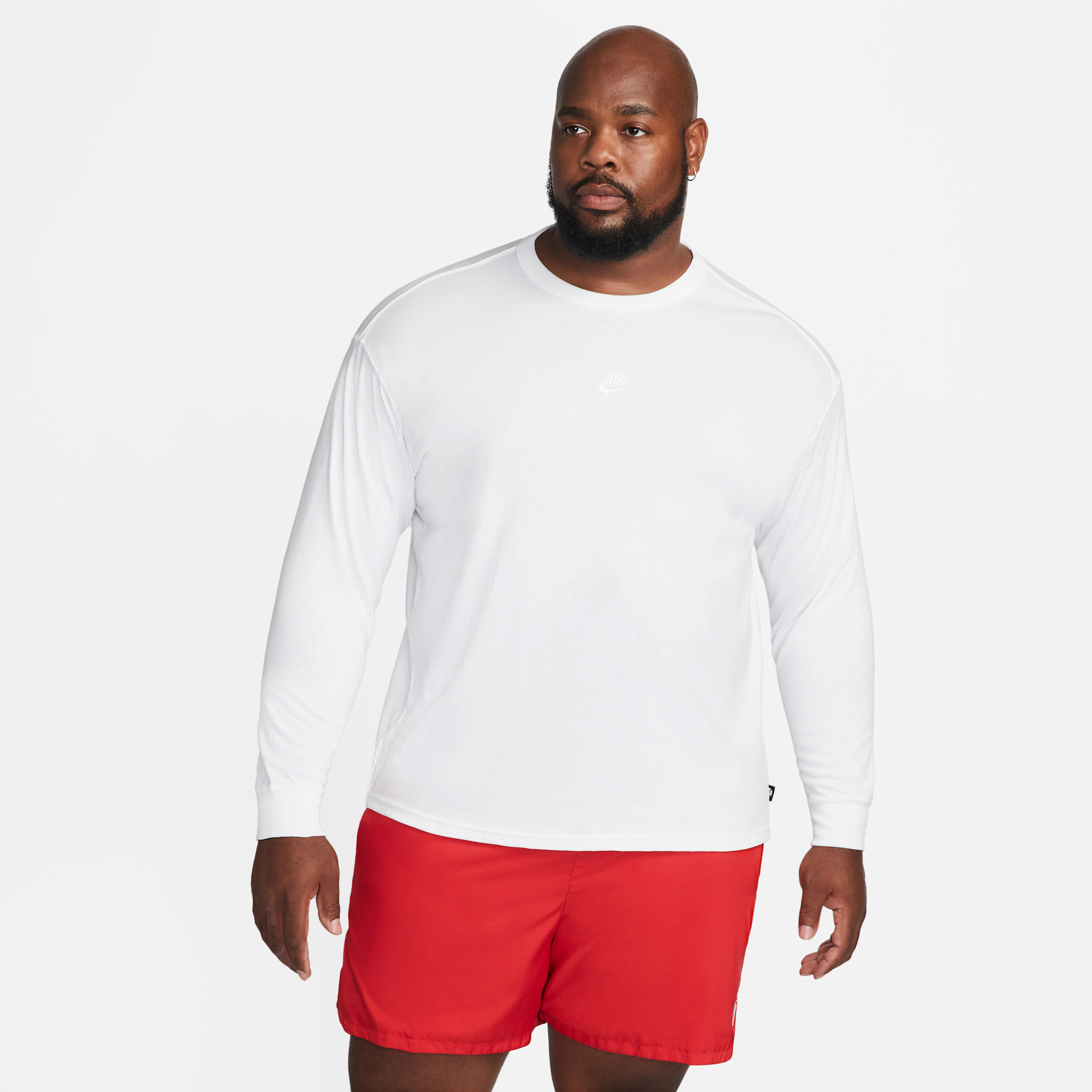 The Nike Sportswear Long-Sleeve T-Shirt delivers an effortlessly comfortable and relaxed look, perfect for everyday wear. It is crafted from a heavy, organic cotton fabric that provides a substantial yet soft feel against the skin, ensuring both comfort and durability. A subtle Futura logo, centrally placed on the front, offers a classic and unmistakable Nike aesthetic. The ribbed collar is designed to provide a clean, comfortable, and secure fit around the neck.