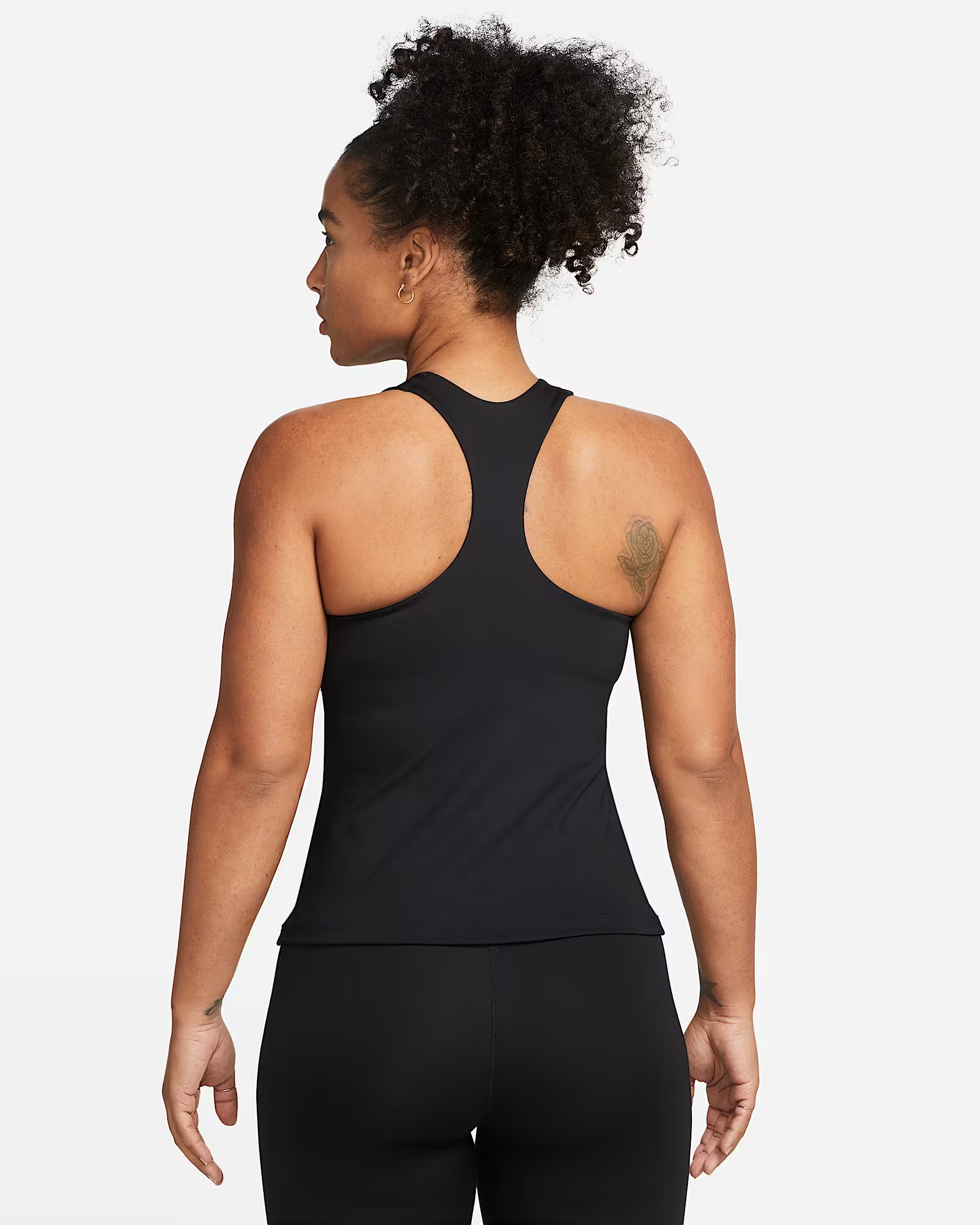 If you want it all, this tank top is the right choice. The iconic Swoosh logo is knitted into the smooth, stretchy fabric for cozy comfort. It's got everything you need to go from the office to the gym and back. With sewn-in padding and a racerback silhouette, you can feel confident that nothing will slip while you run.