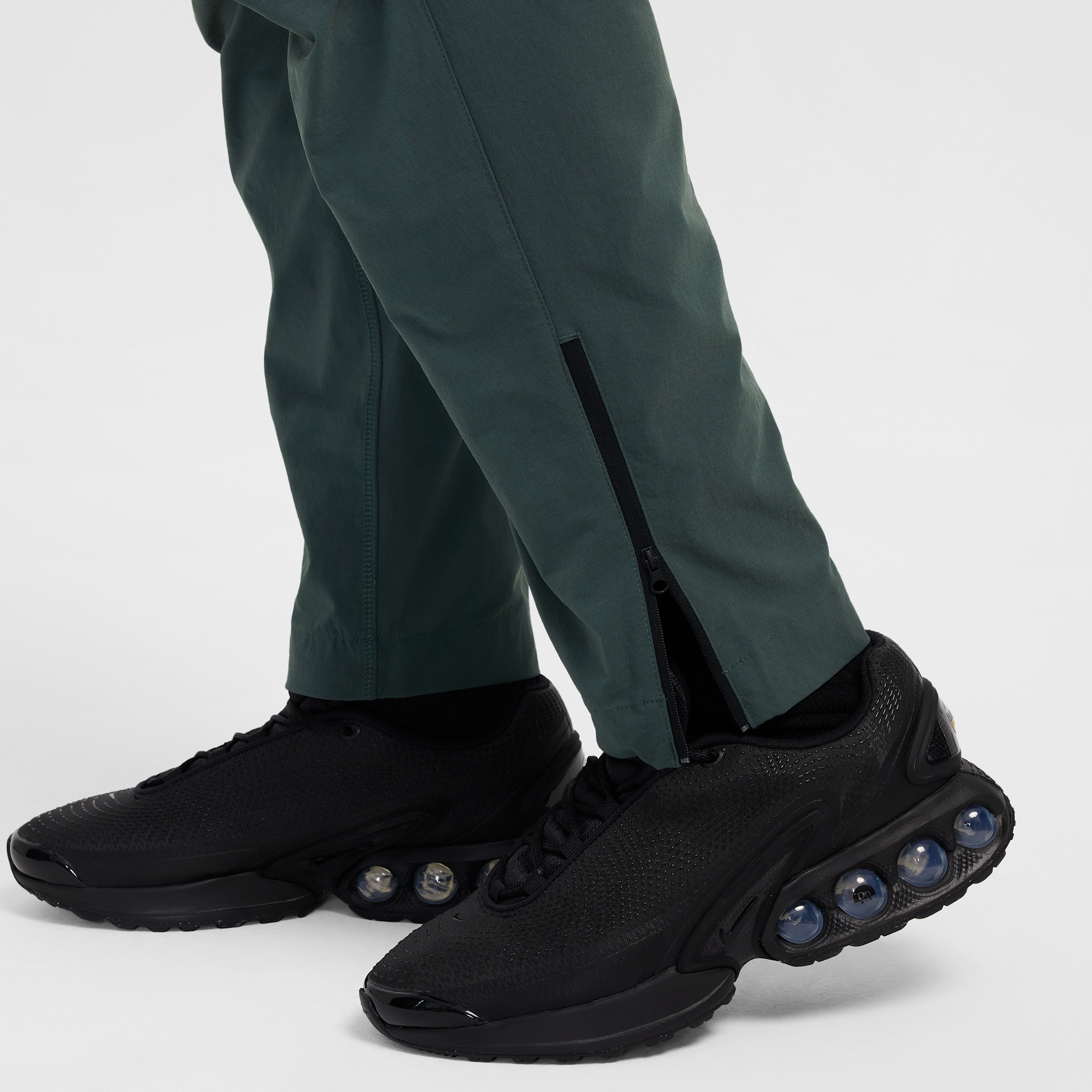 Engineered for a modern fit, these trousers are cut wider through the seat and thighs, gradually tapering down to a zippered ankle for a streamlined silhouette. This design ensures freedom of movement while maintaining a sharp, contemporary look. Classic Nike Tech details further enhance their professional and athletic appeal.