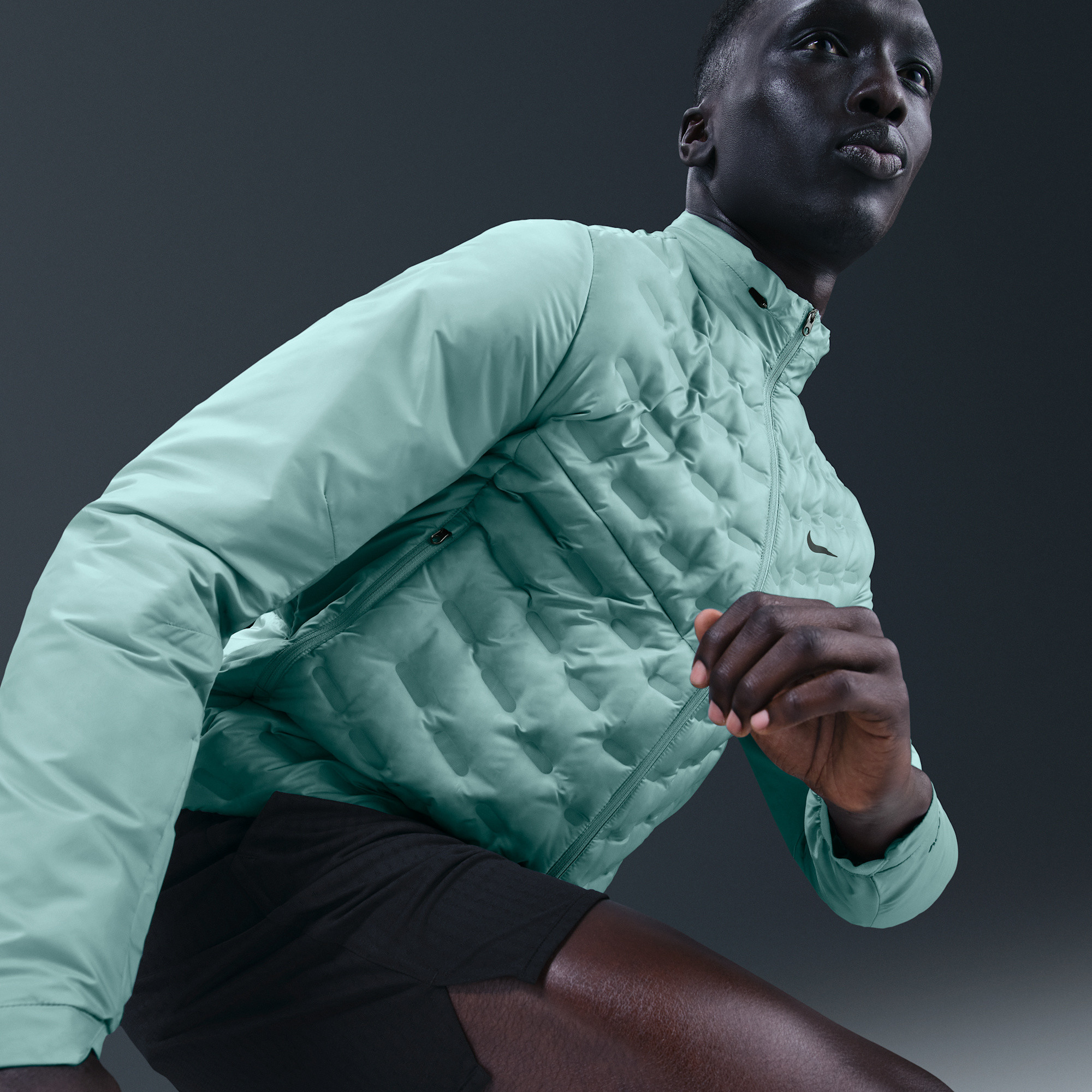 Don't let cold weather stop your run. Our designers crafted this insulated, sweat-wicking running jacket to keep you going. Featuring Nike Therma-FIT ADV technology, it combines heat-regulating fabric with advanced construction and features designed to keep you warm in chilly conditions. The material also boasts a durable, water-repellent coating, ensuring you stay dry. A packable hood offers versatile options, ready whether you need it for quick sprints or your long weekend runs. This jacket is engineered for performance and comfort, allowing you to focus on your stride, not the elements.