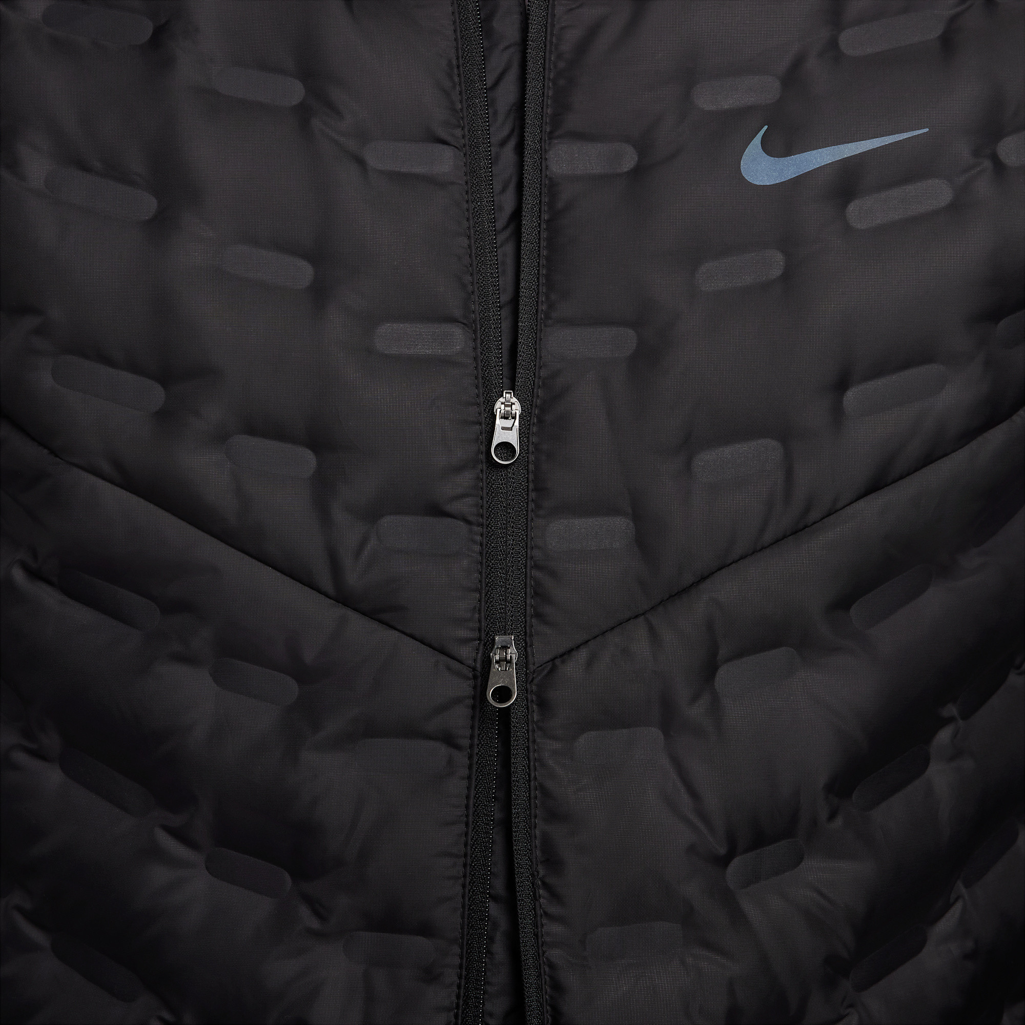 Don't let cold weather stop your run. Our designers developed this insulated, sweat-wicking running jacket specifically for those conditions. Featuring Nike Therma-FIT ADV technology, it combines heat-regulating fabric with advanced construction and features to keep you warm in chilly temperatures. The material also boasts a durable, water-repellent coating, offering protection against light rain. A packable hood provides versatile options, whether you need it for quick sprints or your longer weekend runs.