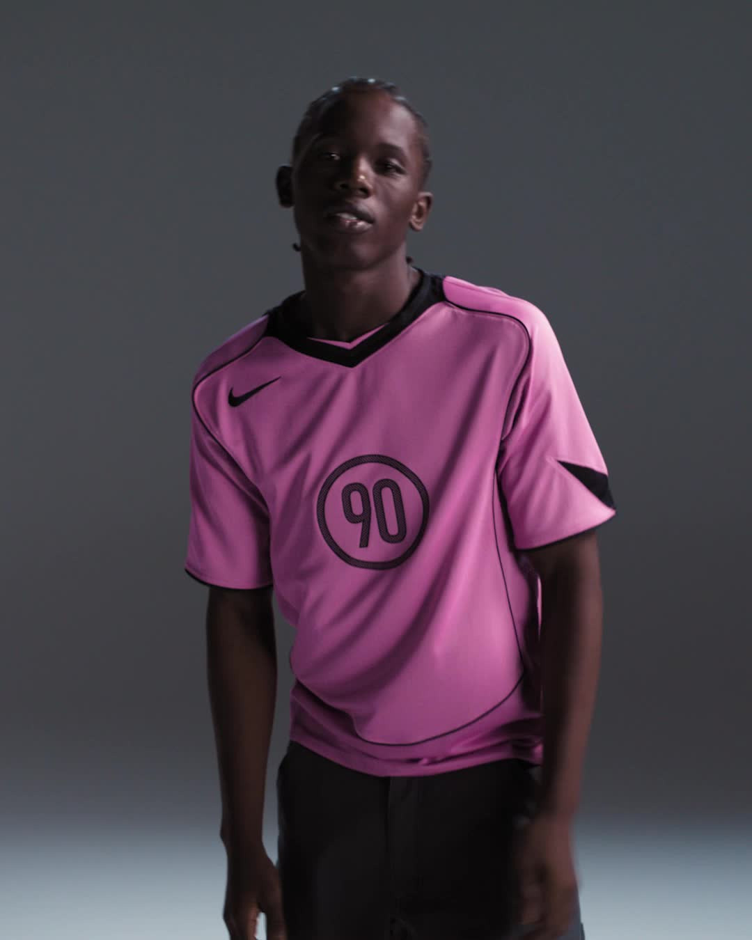 Celebrate Nike's iconic Total 90 legacy with this Dri-FIT short-sleeve football top. Designed with advanced sweat-wicking technology, this jersey-inspired top keeps you dry and comfortable, whether you're on the pitch or off. Its breathable fabric ensures optimal airflow, providing a cool sensation during intense activity. The design draws inspiration from the distinctive aesthetics of the mid-2000s, offering a blend of classic style and modern performance.