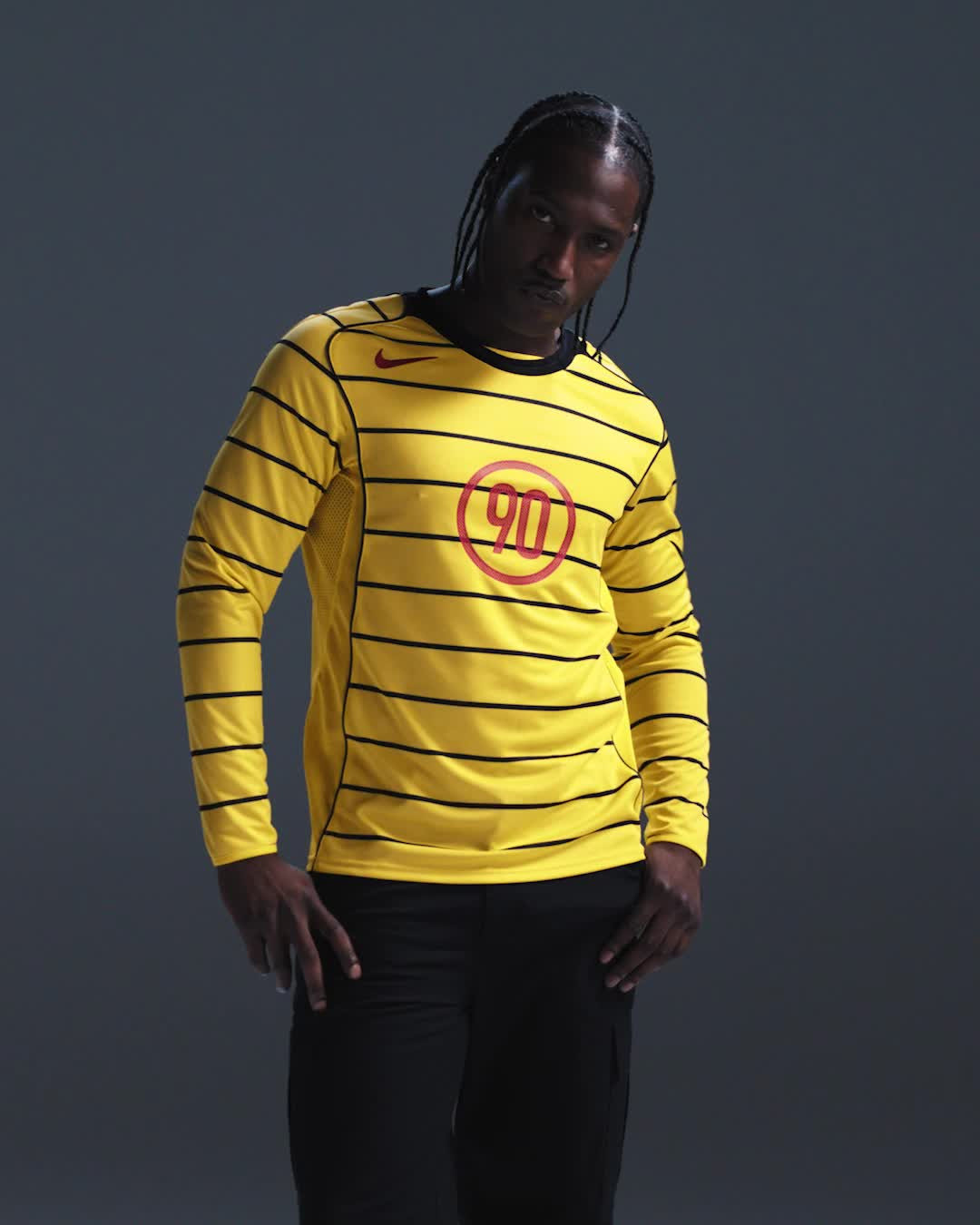 Embrace the legacy of Nike's iconic Total 90 series with this Dri-FIT long-sleeve football top. Designed to keep you cool and dry, its advanced sweat-wicking fabric efficiently moves moisture away from your skin, ensuring optimal comfort whether you're training hard or cheering from the sidelines. The breathable material promotes excellent airflow, making it ideal for intense activity. This top features a classic jersey-inspired look, paying tribute to the distinctive style of the mid-2000s, blending nostalgic aesthetics with modern performance. Perfect for dedicated players and fans alike, it offers a professional edge to your athletic wardrobe.
