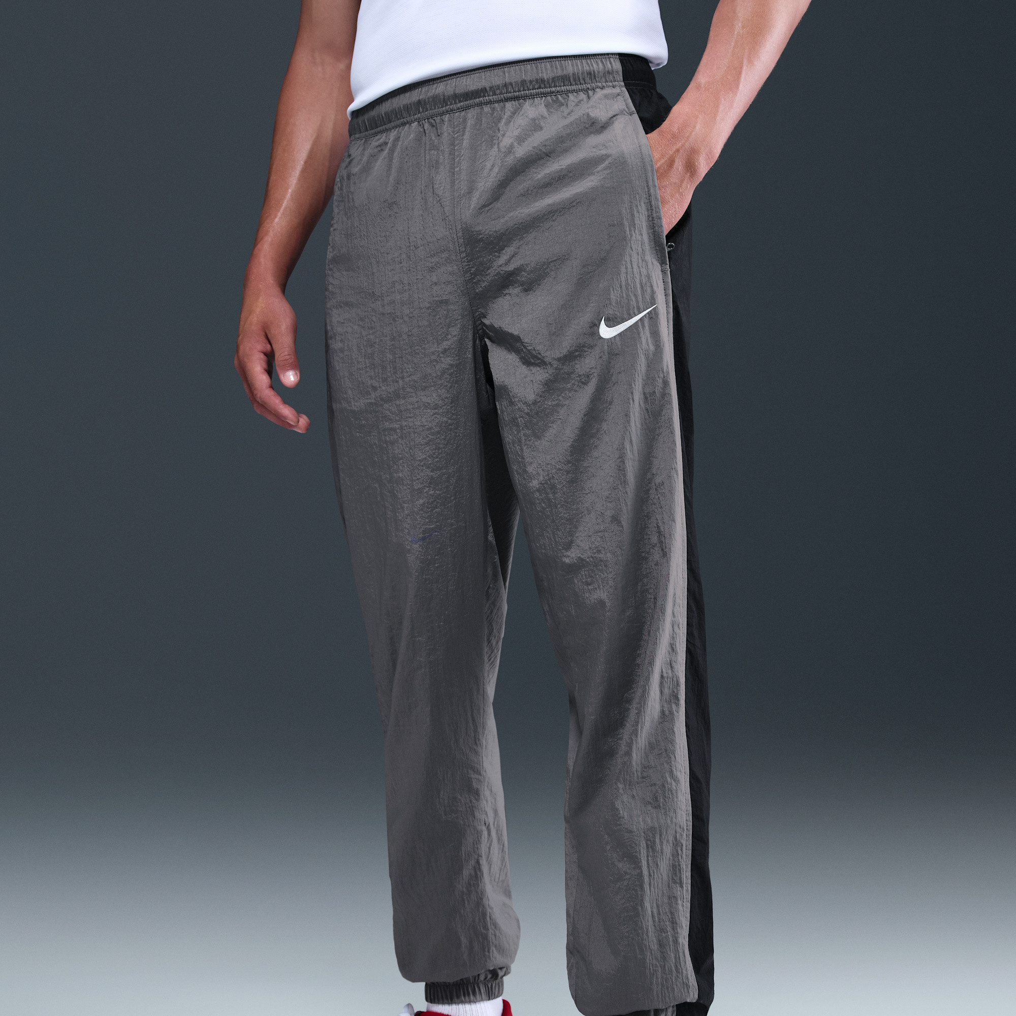 Embrace the iconic aesthetic of early 2000s Nike football jerseys with these Total 90 training pants. Crafted from durable nylon, they blend nostalgic vibes with modern, functional style. The design features distinctive curved, asymmetrical lines that pay homage to a golden era of football apparel.