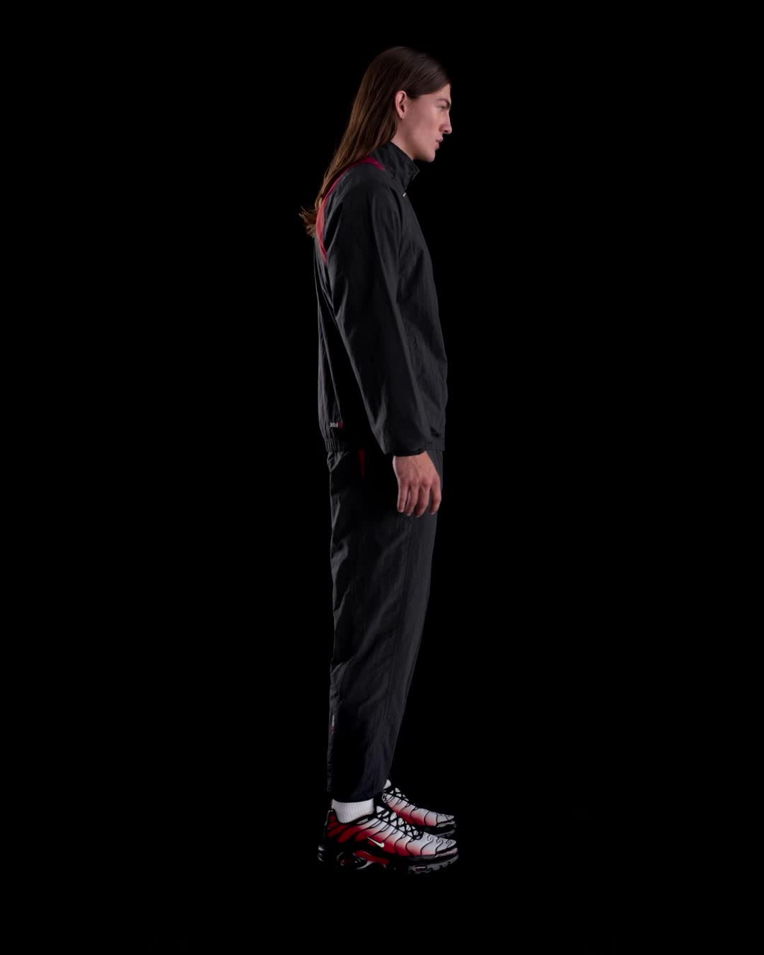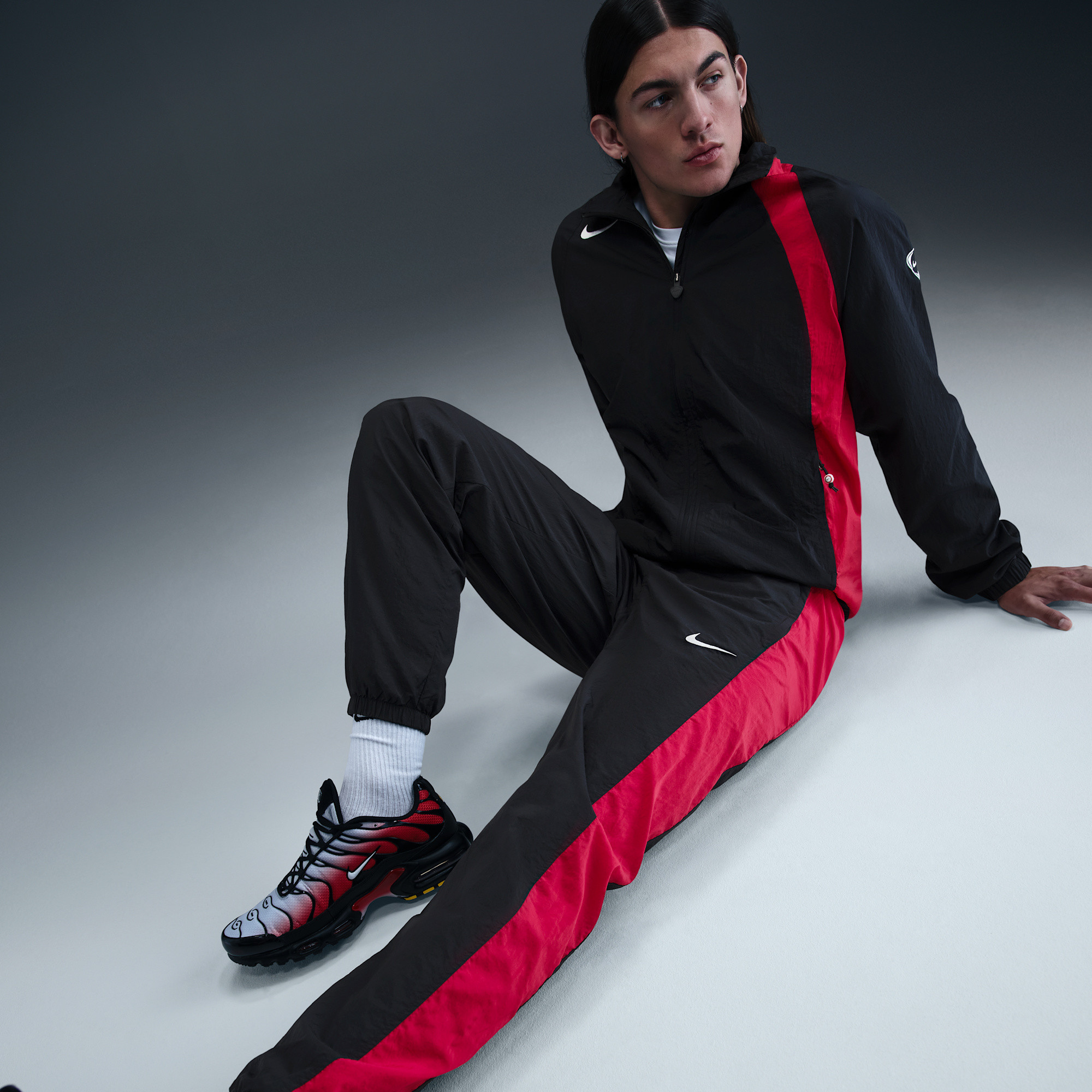 Embrace the iconic aesthetic of early 2000s Nike football jerseys with these Total 90 training pants. Crafted from durable nylon, they blend nostalgic vibes with modern, functional style. The distinctive curved, asymmetrical design lines are not just a nod to heritage but also enhance the overall dynamic look. Featuring a water-repellent shell and a comfortable mesh lining, these pants are engineered to keep you dry and comfortable. Perfect for both the stadium stands and everyday street wear, they offer a versatile and professional addition to any wardrobe.
