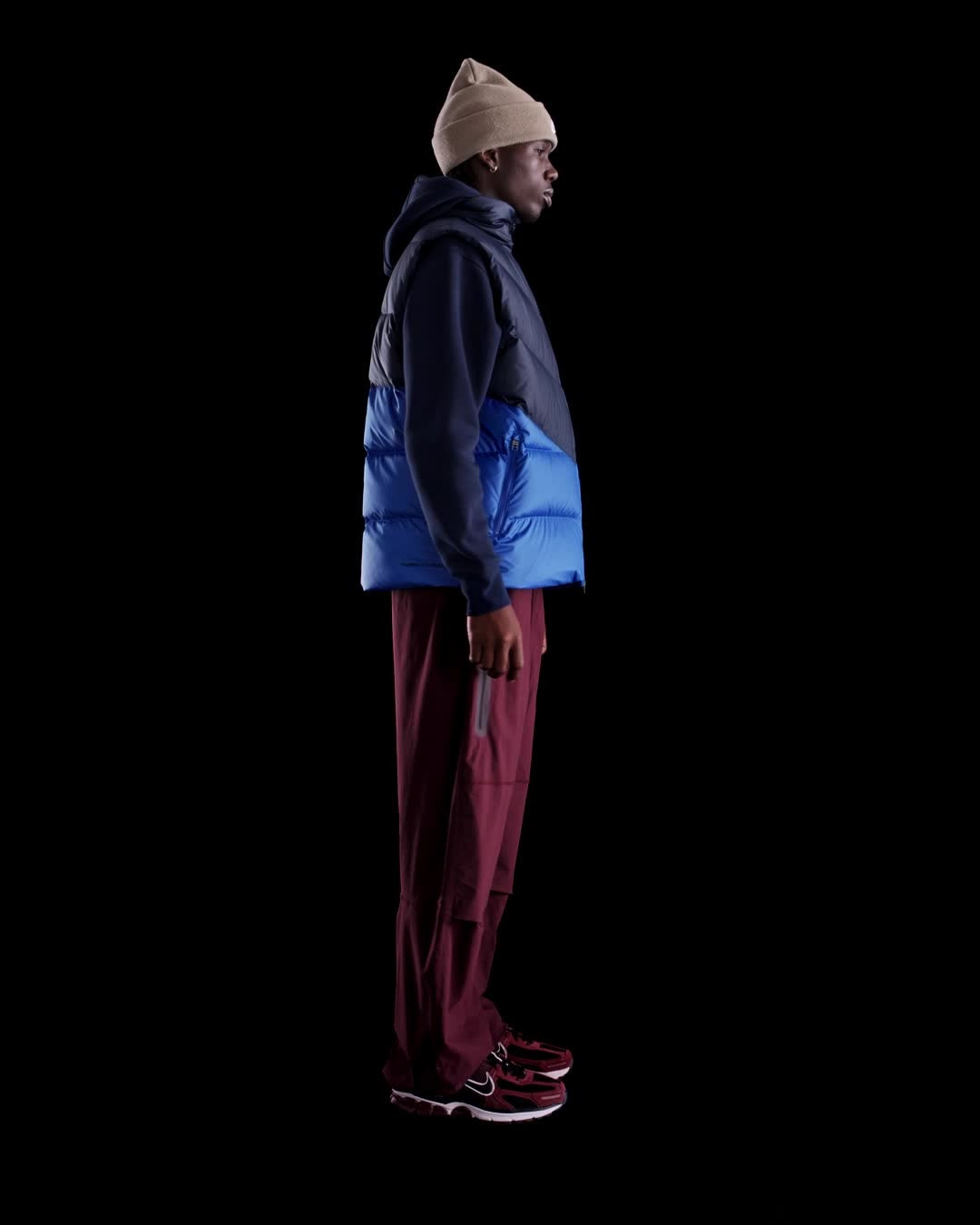 Embrace the iconic Windrunner style and stay prepared for changing temperatures with this versatile down vest. Designed for the modern man, it combines legendary aesthetics with practical functionality. Crafted from a high-quality, water-repellent material, this vest offers reliable protection against light rain and damp conditions, ensuring you remain comfortable and dry. Its relaxed, roomy fit is perfect for effortless layering over hoodies, long-sleeve shirts, or light jackets, providing adaptable warmth without restricting movement. The lightweight down insulation delivers excellent heat retention, making it an ideal choice for transitional weather or as an extra layer on colder days. Featuring the distinctive Windrunner chevron design, this vest not only performs but also makes a bold style statement.