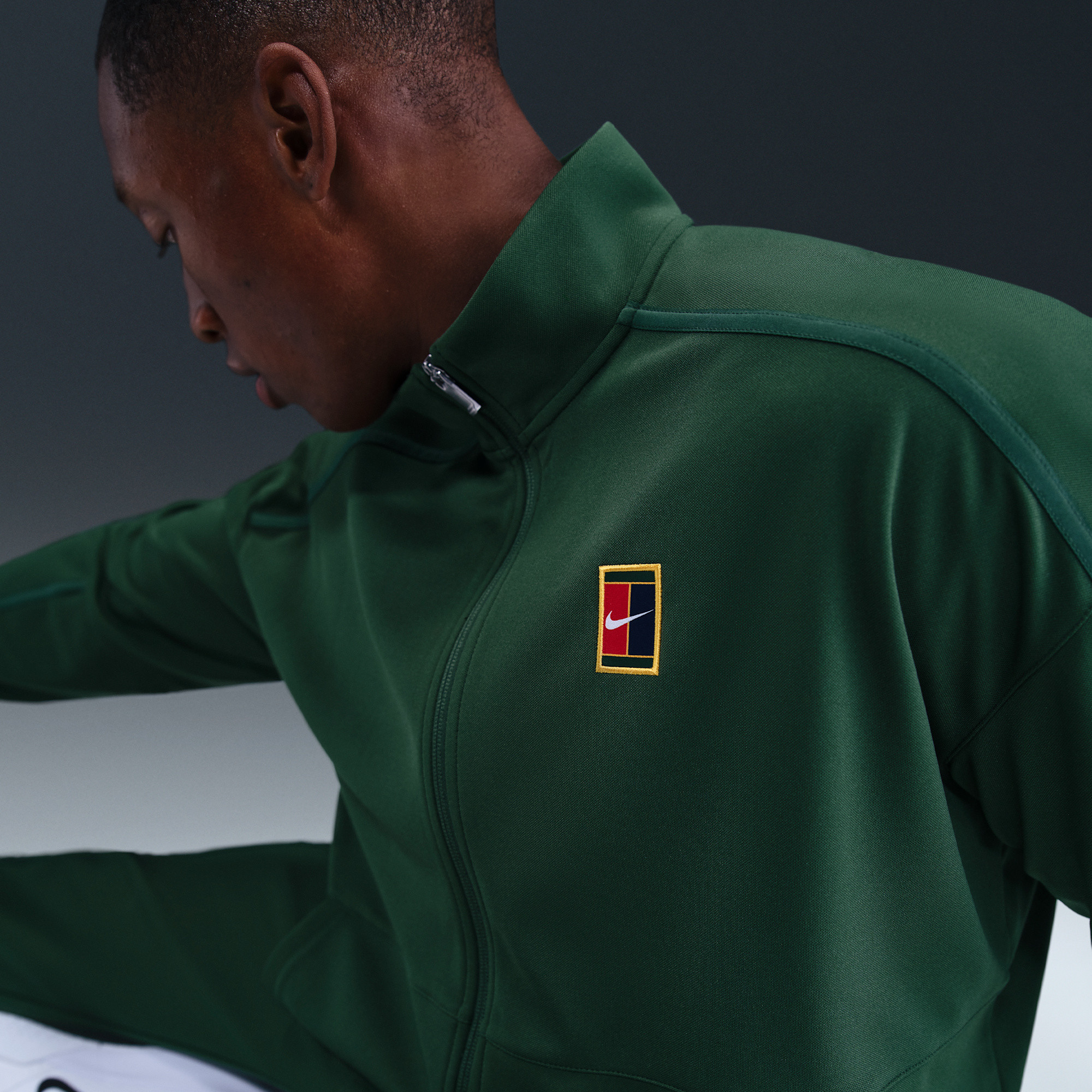 The jacket's thoughtful design includes a structured collar that maintains its shape, adding a touch of refined elegance. A distinctive retro-style NikeCourt patch adorns the jacket, celebrating the brand's rich heritage and adding an authentic vintage appeal to this modern classic. Experience the perfect blend of comfort, style, and athletic legacy.