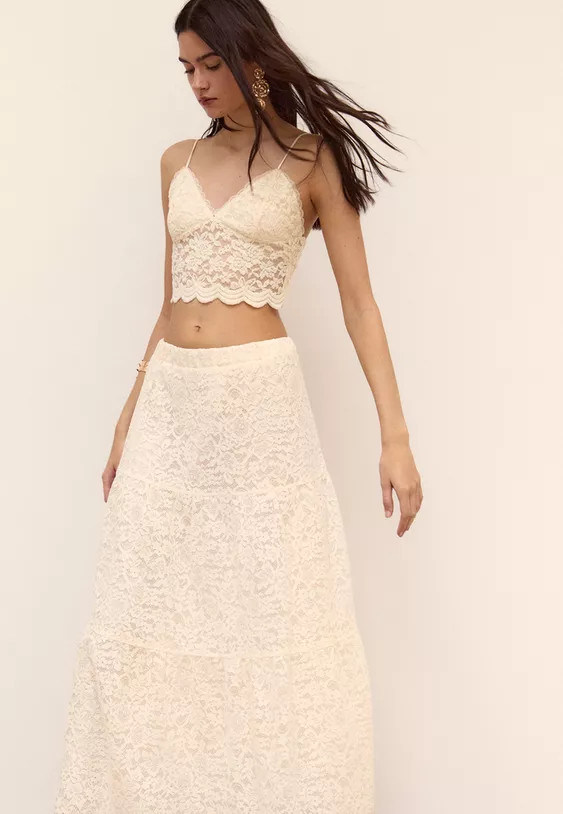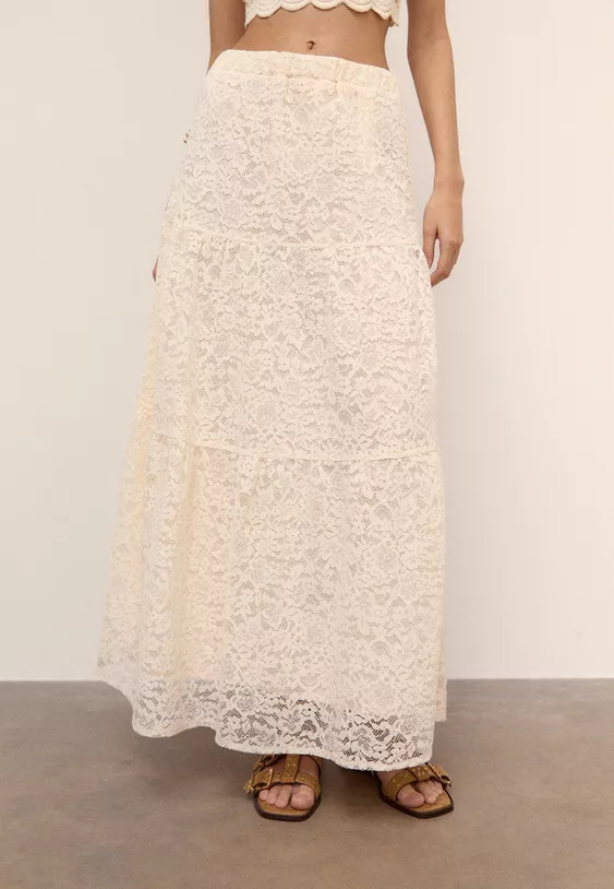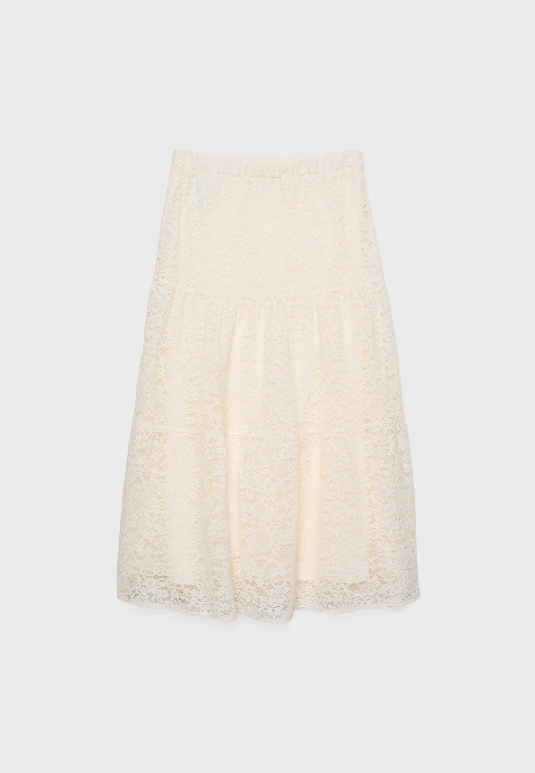 Midi skirt with a flowing cut, a midi-length hem, and an elastic waistband. Tonal lining.