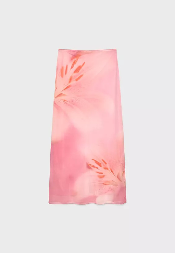 Midi skirt made of tulle fabric with inner lining, mid-rise waistband and stretch waistband. Available in various colors.