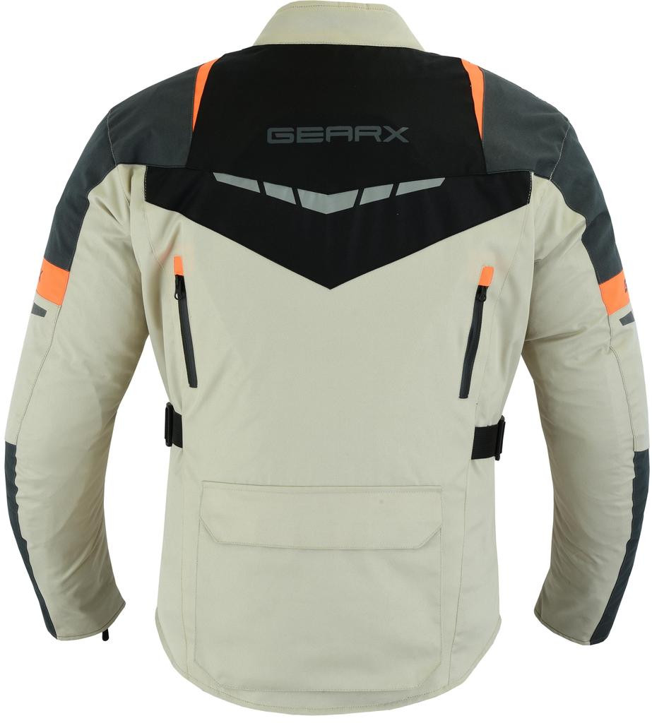 WINDPROOF , WATERPROOF AND BREATHABLE, 600D CORDURA CONSTRUCTION YKK ZIPPERS REMOVABLE THERMAL LINING. 3M REFLECTIVE PRINTING. REMOVABLE ARMOURS AT BACK , ELBOW & SHOULDER 2 FRONT POCKETS , 1 BACK POCKET , 1 INNER POCKET HEAVY DUTY ZIPPER AT BOTTOM TO ATTACH TROUSERS AIR VENT ZIPPERS AT FRONT, BACK AND FOREARM ALL SEEMS ARE HEAT MOULDED SEALED TO MAKE IT WATERPROOF COMFORTABLE PADDED COLLAR VENT ZIPPERS AT FRONT, BACK AND FOREARM According to customer feedback, sizes run Generous on this model
