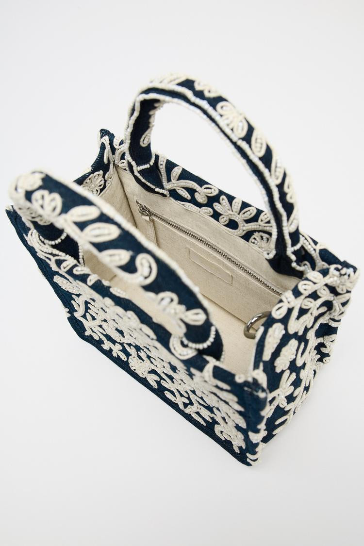 Zara EMBROIDERED DETAIL DENIM STRUCTURED CITY BAG