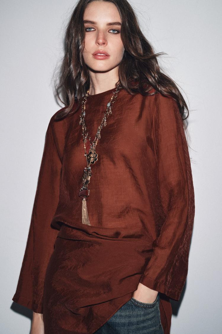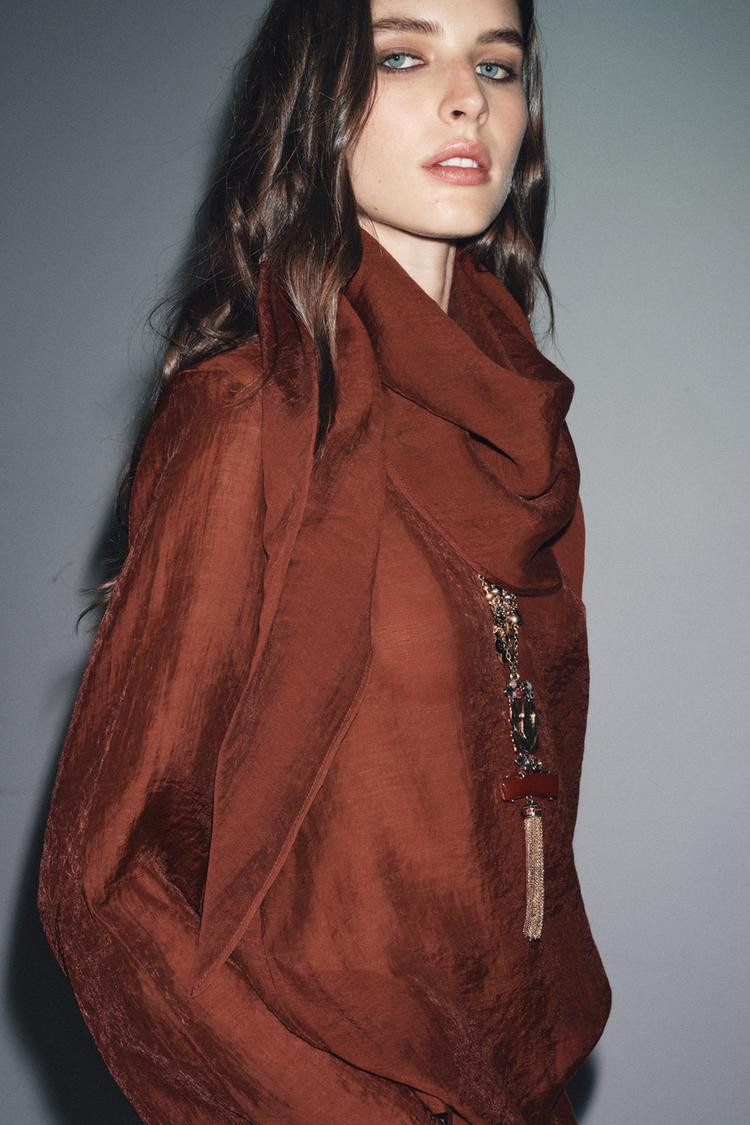 Zara FLOWING BLOUSE WITH MULTI-POSITION SCARF DETAIL ZW COLLECTION
