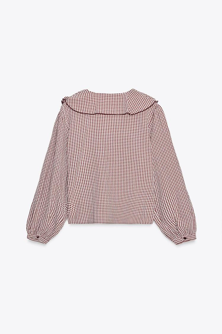 V-neck blouse with ruffle and bow detail. Long sleeves.