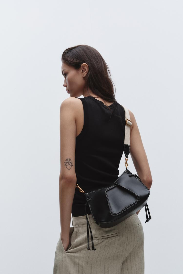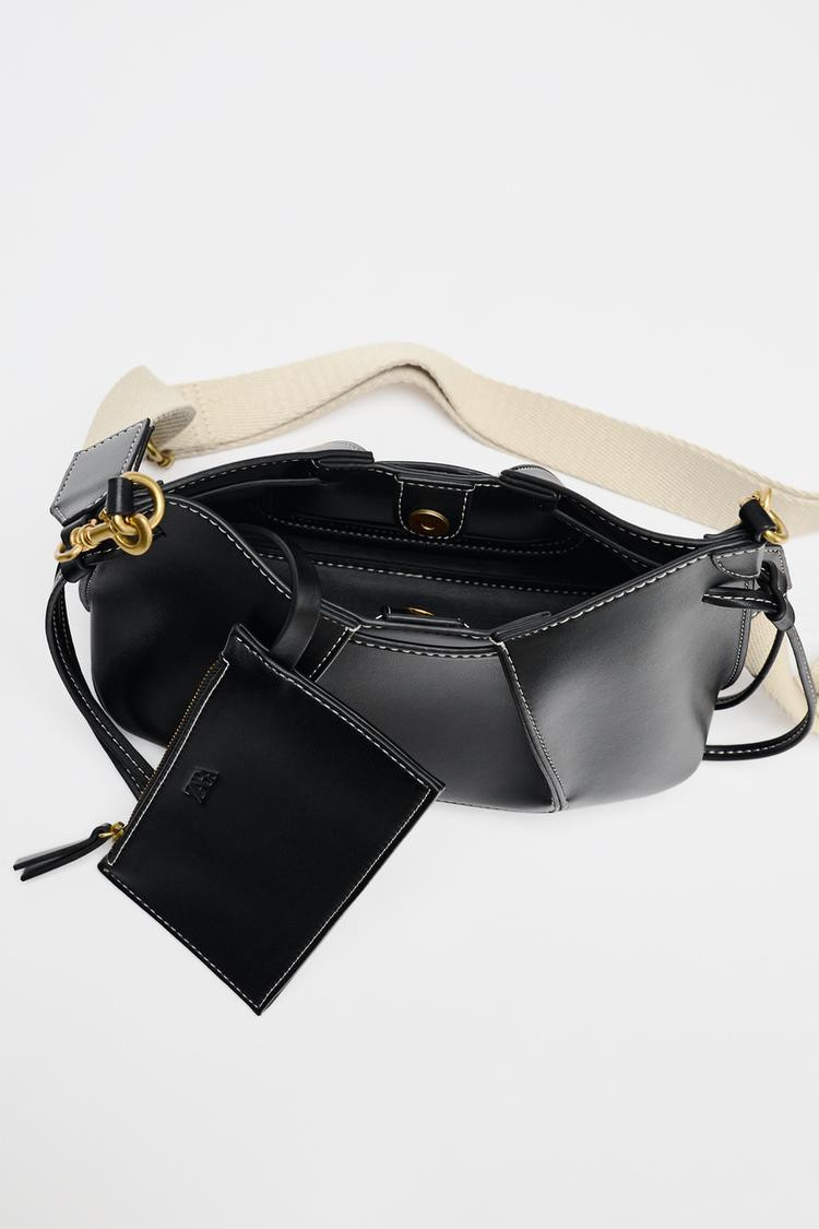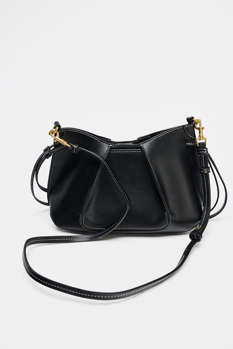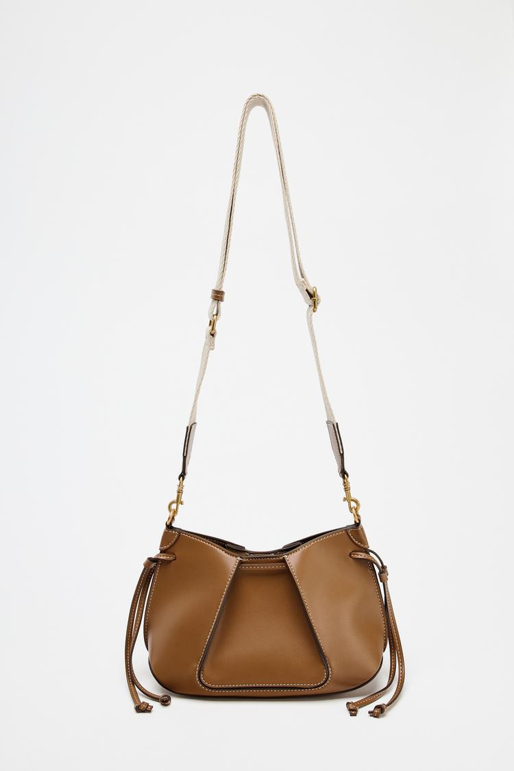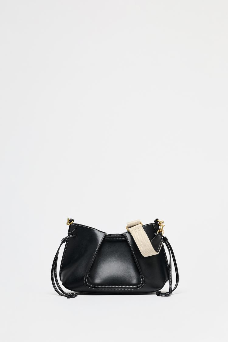 Mini bag with pleated detail on the top. Adjustable crossbody strap. Sides with gathered detail. Purse with removable pocket. Magnetic clasp closure.