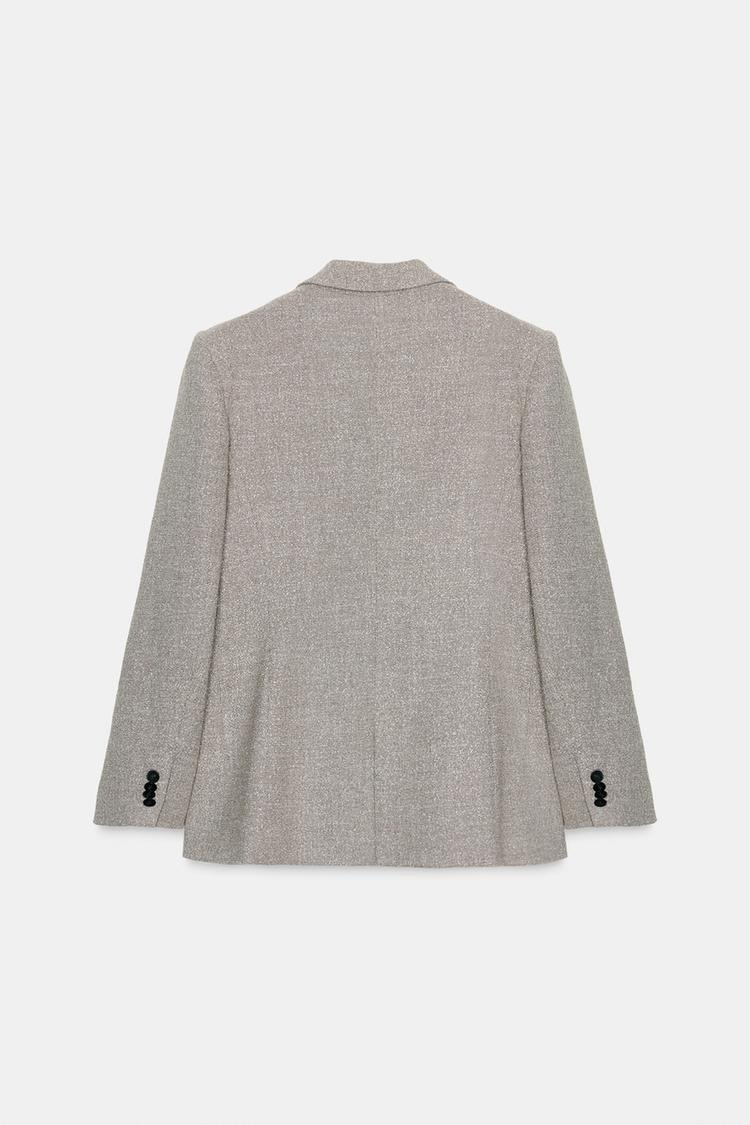 Tailored blazer with a lapel collar, long sleeves and shoulder pads. Featuring front flap pockets, a vent at the back and front button fastening.