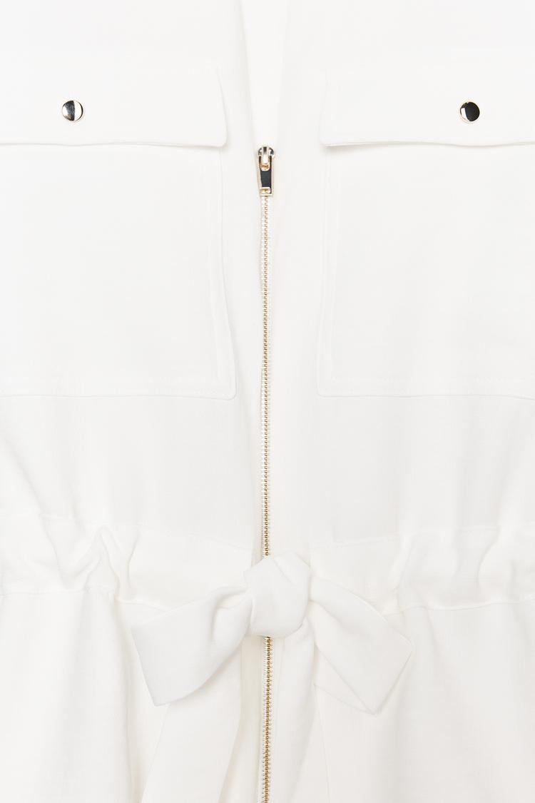 Shirt with a lapel collar, v-neck and short sleeves with turn-up cuffs. Featuring front patch pockets with flaps, a drawstring waist, side vents at the hem and a zip-up front.