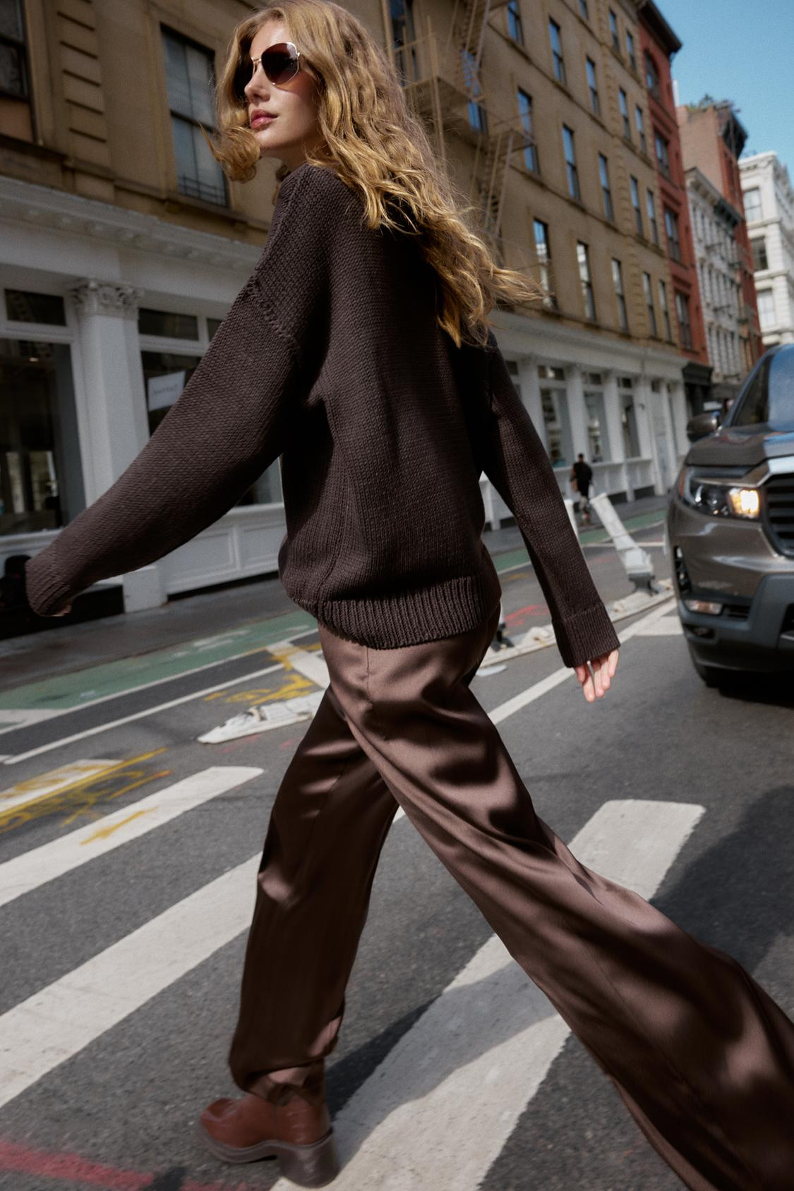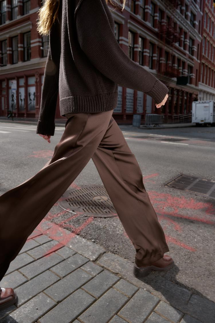 Zara SATIN STRAIGHT-LEG TROUSERS