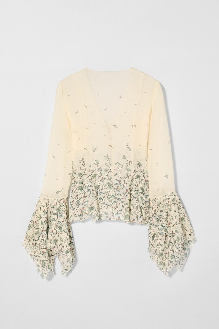 Zara SILK PRINTED BLOUSE KATE MOSS X ZARA