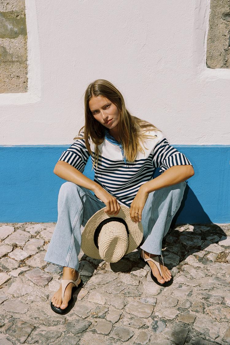 Shirt made with a linen blend. Boat neck and wide short sleeves finished with a turn-up and buttons on the shoulder.