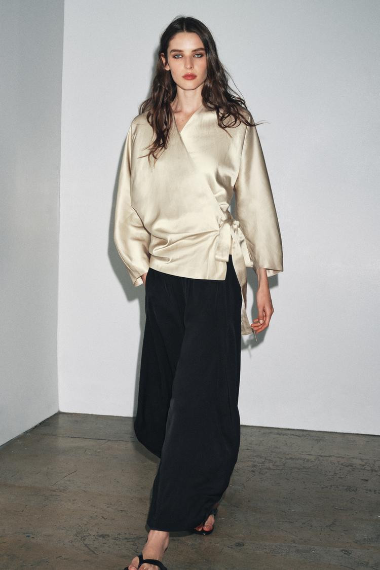 Zara WRAP BLOUSE WITH BOW IN LINEN ZW COLLECTION