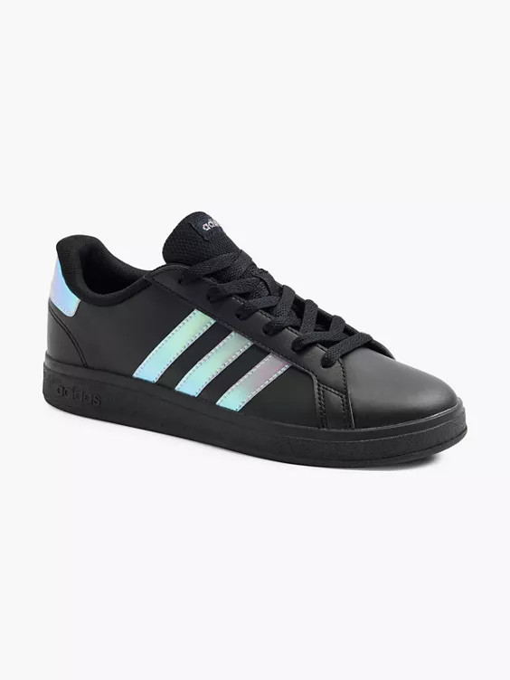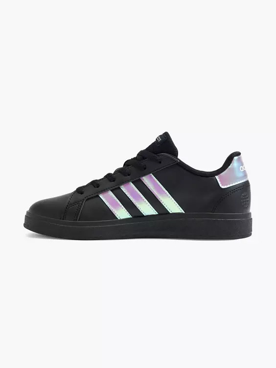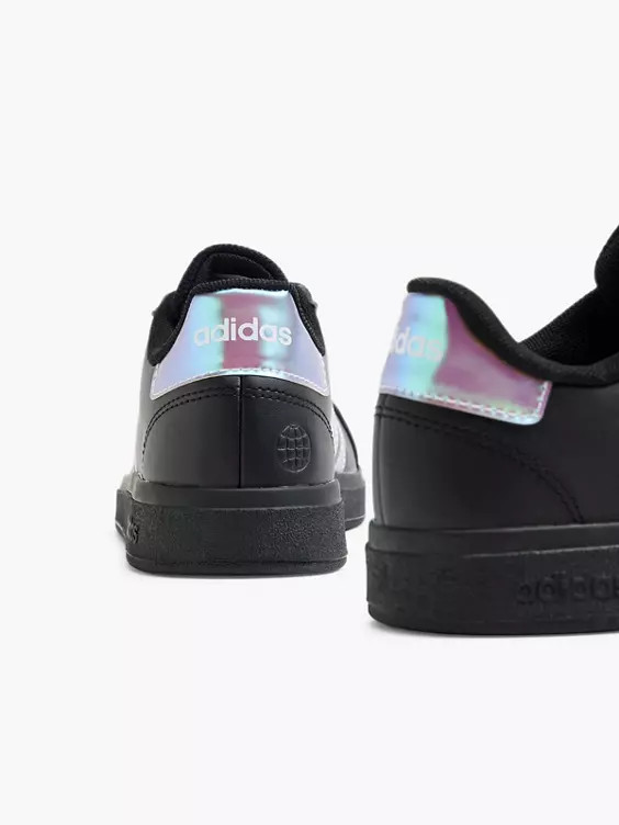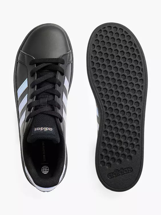 About this article adidas has given the classic Grand Court for kids a modern update. The soft synthetic leather upper can withstand a lot of play and romping, while the flexible rubber cupsole protects and stabilizes growing children's feet. It's no wonder this shoe appeals to more than just the little ones! The upper is made with various recycled materials and has a recycled content of at least 50%.