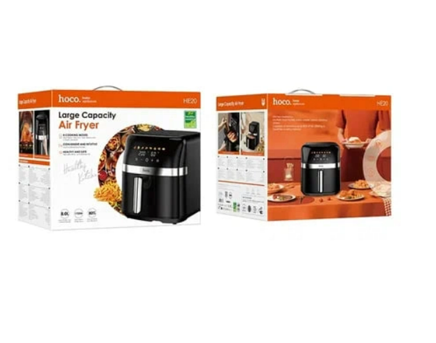 The HOCO he20 aerogril is a modern cooking device that combines the advantages of a grill and a fryer. It allows you to prepare a variety of dishes, and at the same time retains all the beneficial properties of the products. The HOCO he20 aerogril is equipped with a powerful engine with a power of 1700 W, which provides fast and uniform heating. This allows you to prepare dishes with a crispy crust and a soft texture inside. The volume of the fryer is 8 liters, which helps to prepare a sufficient amount of food for a large family or group of friends. The device has a modern black color that easily fits into any kitchen interior. The HOCO he20 air fryer is convenient to use and care for. Due to the non-stick teflon coating, it is not necessary to use oil in cooking, which makes the dishes healthy and dietary.he volume of the fryer is 8 liters, which helps to prepare a sufficient amount of food for a large family or group of friends. The device has a modern black color that easily fits into any kitchen interior. The HOCO he20 air fryer is convenient to use and care for. Due to the non-stick teflon coating, it is not necessary to use oil in cooking, which makes the dishes healthy and dietary. By choosing a HOCO he20 aerogril, you will have a multifunctional device for preparing various dishes, which will enrich your diet and make it healthier.