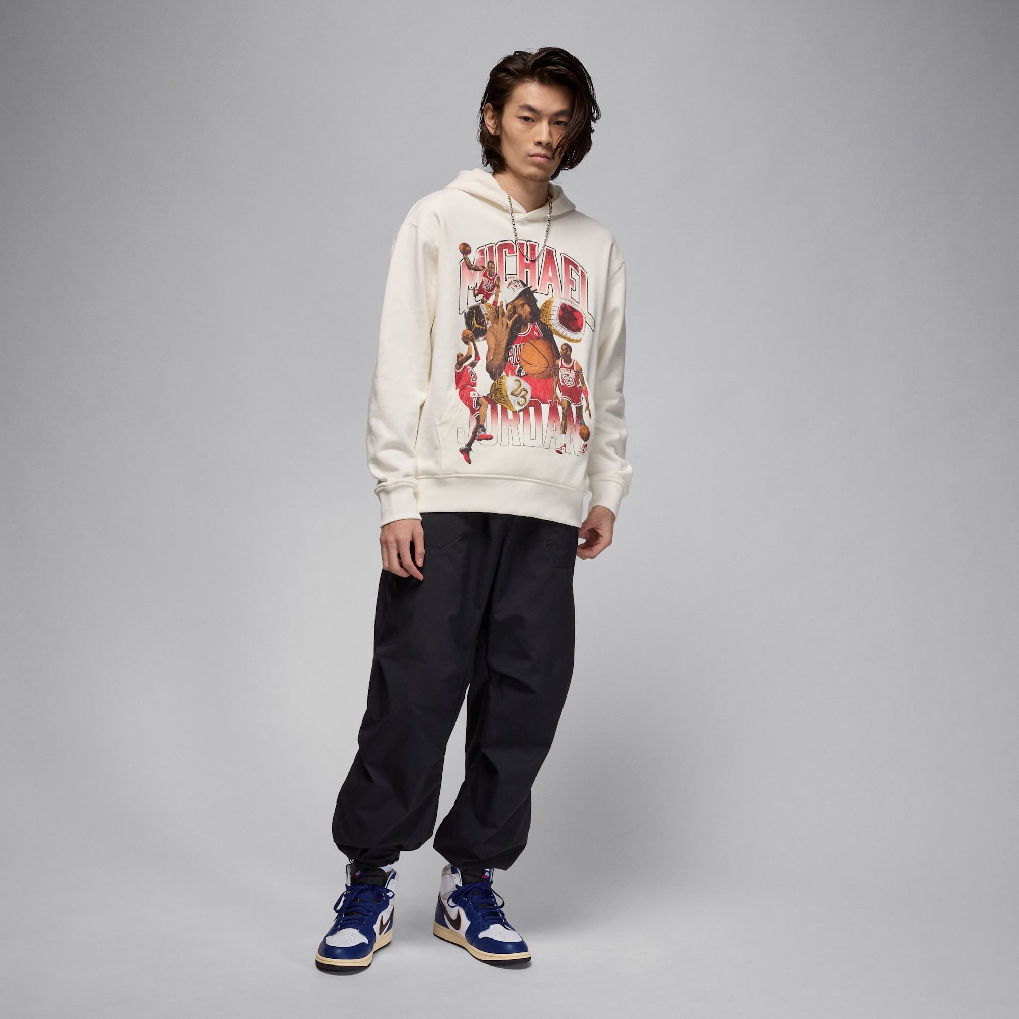 This high-top silhouette provides excellent ankle support and a secure fit, while the durable rubber outsole ensures long-lasting traction on various surfaces. The iconic Air Jordan design elements, such as the Wings logo and Nike Swoosh, are subtly integrated, paying homage to the original while embracing contemporary aesthetics.