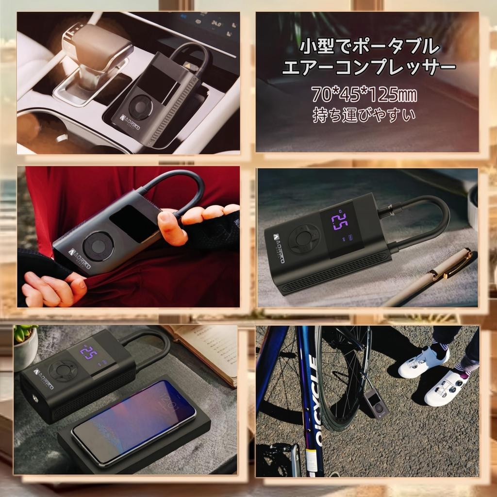 Inflate with just one button press, easy operation, easier than previous inflators! Inflation automatically stops when the set air pressure is reached. This single product can be used for bicycles, motorcycles, cars, balls, floats, air mats, air mufflers, etc. The troublesome task of pumping air can be done automatically. Compatible with all valves used on bicycles (English/American/French), small and lightweight, easy to carry, and can be used at home or outdoors without worrying about insufficient air pressure. Product contents: Portable compressor, English valve, American valve, French valve, ball nozzle, air nozzle (long), air nozzle (short), charging cable, storage bag, product manual. Product details: ■Size (excluding tubes): Length 125mm, width 71mm, thickness 46mm, ■Weight: 560g (including accessories) ■Battery: 4000mAh ■Operating temperature: -10 to 45 degrees. Small and portable air pump, built-in large capacity rechargeable battery, no power cord, easy to use, compact and lightweight, so you can carry and store it anywhere. Bicycles/cars/motorcycles/buoys/balls, etc. can also be accommodated.